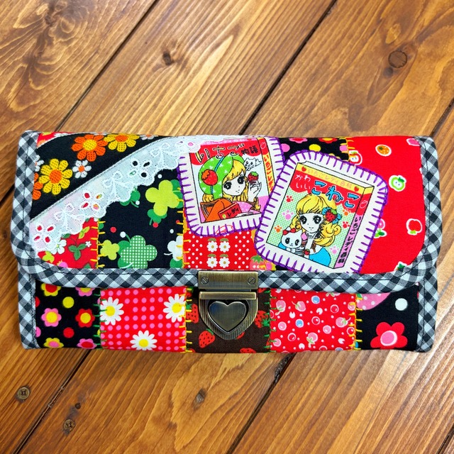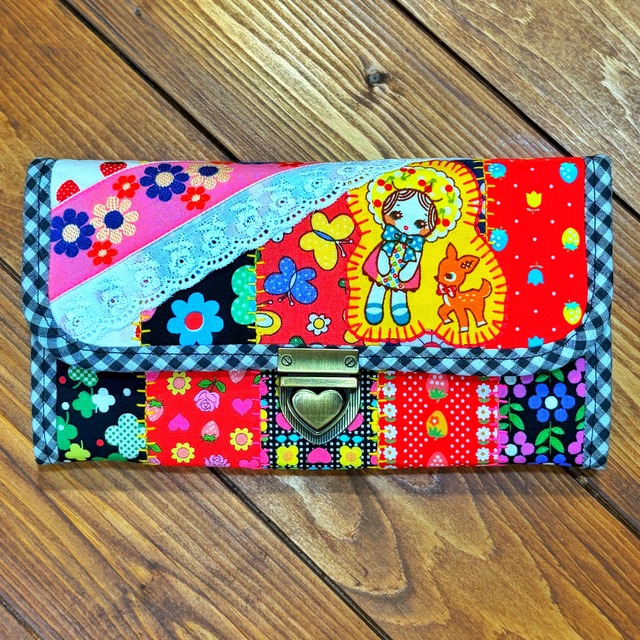 廃盤のレトロ柄の生地やチロリアンテープをぎゅっと詰め込んだ、見ているだけで気分が上がる“特別な長財布”です。 ひとつひとつ丁寧に仕立てたパッチワークは、同じものがひとつとしてない世界にひとつだけのデザイン。 カラフルで可愛いけれど、どこか懐かしさを感じる… そんなレトロポップな雰囲気に仕上げました。 見た目の可愛さだけでなく、収納力も抜群! カードポケットは16ヶ所、仕切りやファスナー付きポケットも充実しており、お札・小銭・通帳などをスッキリ整理できます。 “やりくり財布”として日常使いはもちろん、旅行用にもぴったり。 お気に入りの生地とハートの留め具で、毎日の支払いタイムもちょっと楽しく! 自分へのご褒美や、レトロ好きな方への贈り物にもおすすめです。 \ こんな方におすすめ / ✦レトロでカラフルな世界観が好きな方 ✦個性的で一点もののお財布をお探しの方 ✦カードや通帳などをまとめて整理したい方 ✦長く愛用できるしっかりとしたハンドメイド財布を探している方 ✦プレゼントや特別な贈り物を探している方 :::::::::୨୧::::::::::୨୧::::::::::୨୧::::::::::: 『どこで買ったの?と聞かれちゃうレトロカラフルなやりくり長財布』 ⚫︎size《約縦10.5㎝・横20㎝・厚さ4㎝》 ⚫︎カードポケット16ヵ所 ⚫︎ファスナーポケット2ヵ所《YKKアンティークゴールド特注ファスナー使用》 ⚫︎仕切りポケット3ヵ所 ⚫︎特注のハート形留め具 ⚫︎カードポケット、仕切りポケット、ファスナーポケット部分には接着芯(厚手)を使用。 ⚫︎中面&ジャバラ部分にはシャープ芯(厚手)を使用。 ⚫︎表面部分にもシャープ芯(厚手)を使用し、蓋部分にはキルト芯も二重に使用しています。 :::::::::୨୧::::::::::୨୧::::::::::୨୧::::::::::: お値段は送料込みとなっております。 (⚠︎クロネコヤマトにての発送となります)