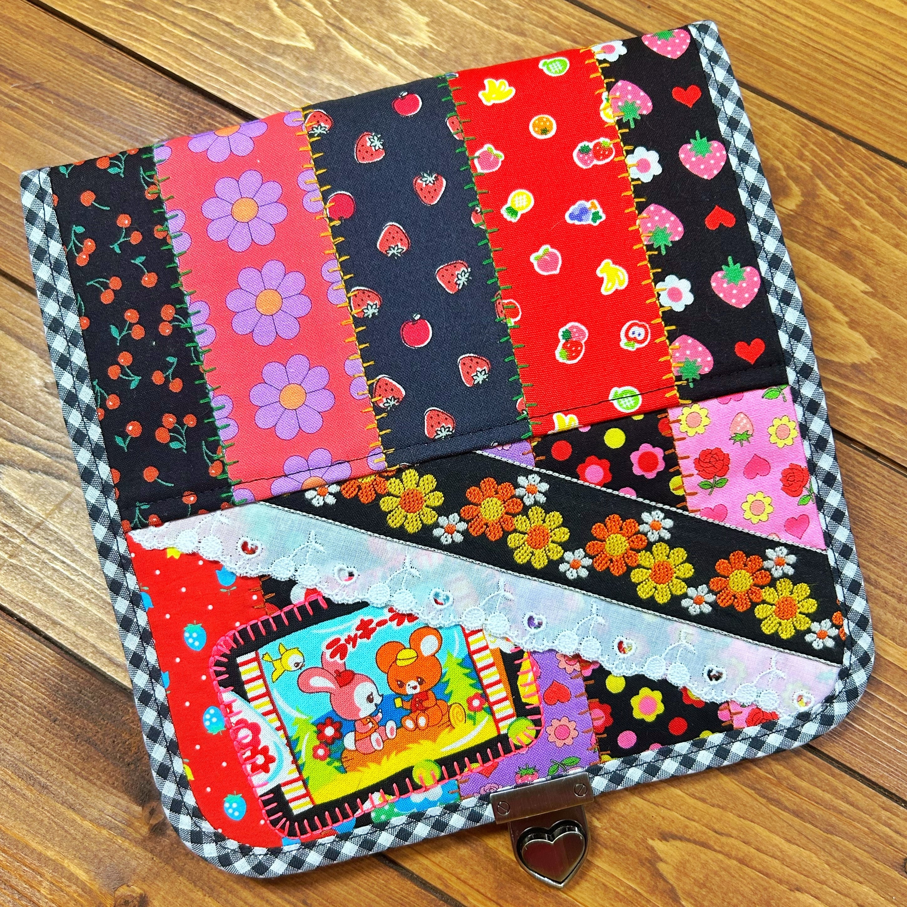 この長財布は、希少なレトロアニマル生地を使用したパッチワークとチロリアンテープが特徴の特別な商品です。