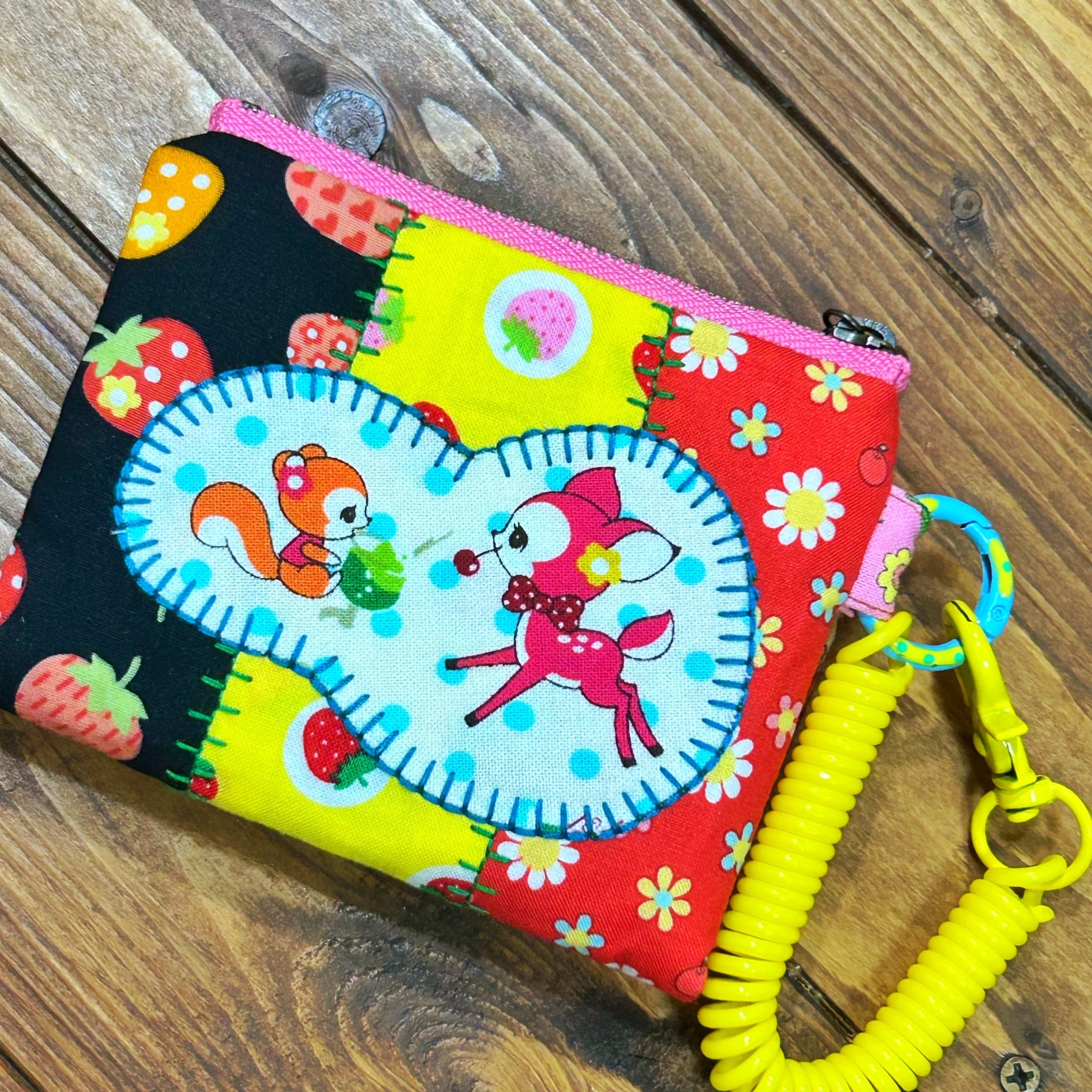 レトロポップな柄をぎゅぎゅっと詰め込んだ、カラフルで楽しい小さなお財布です〜。