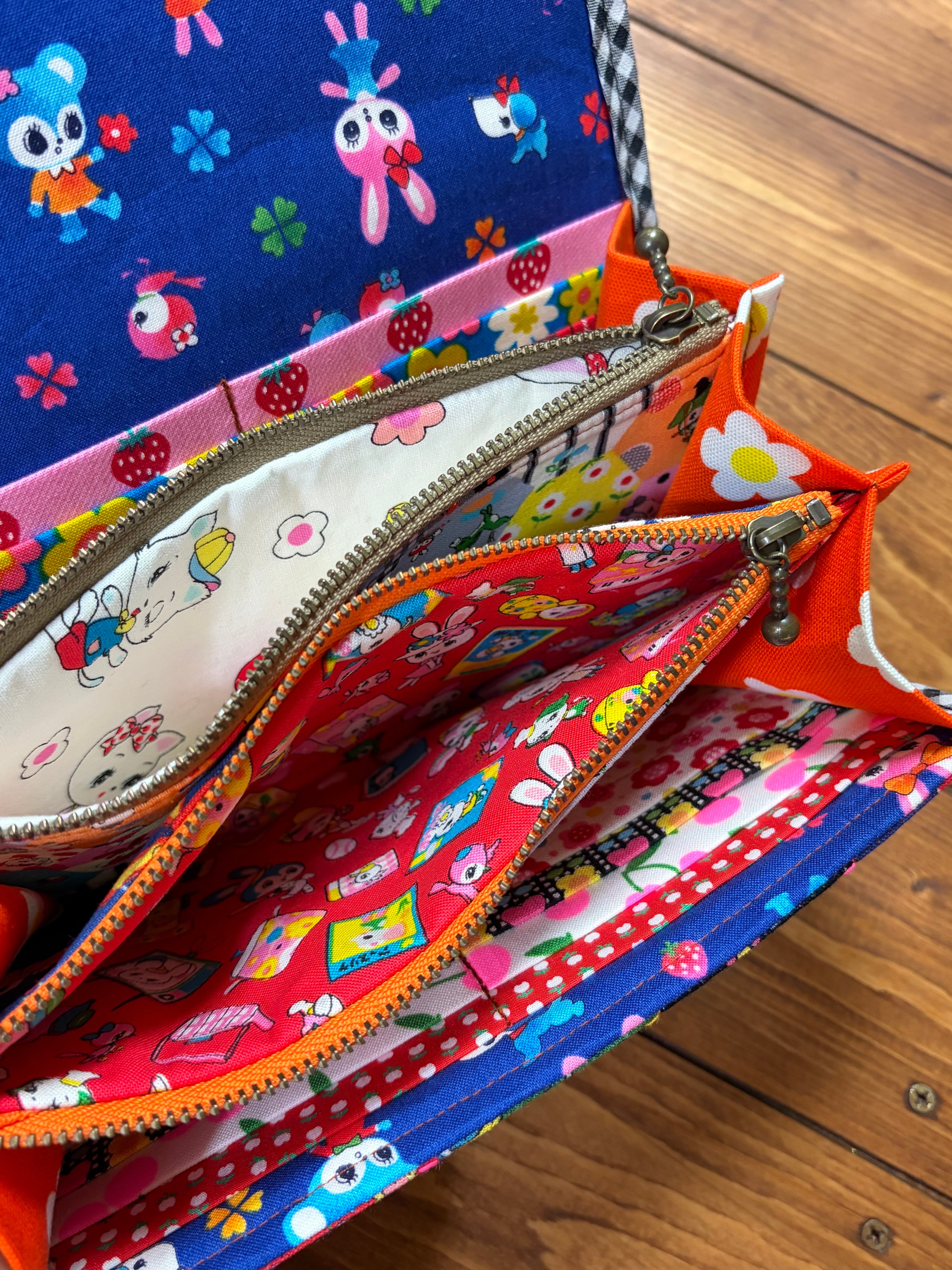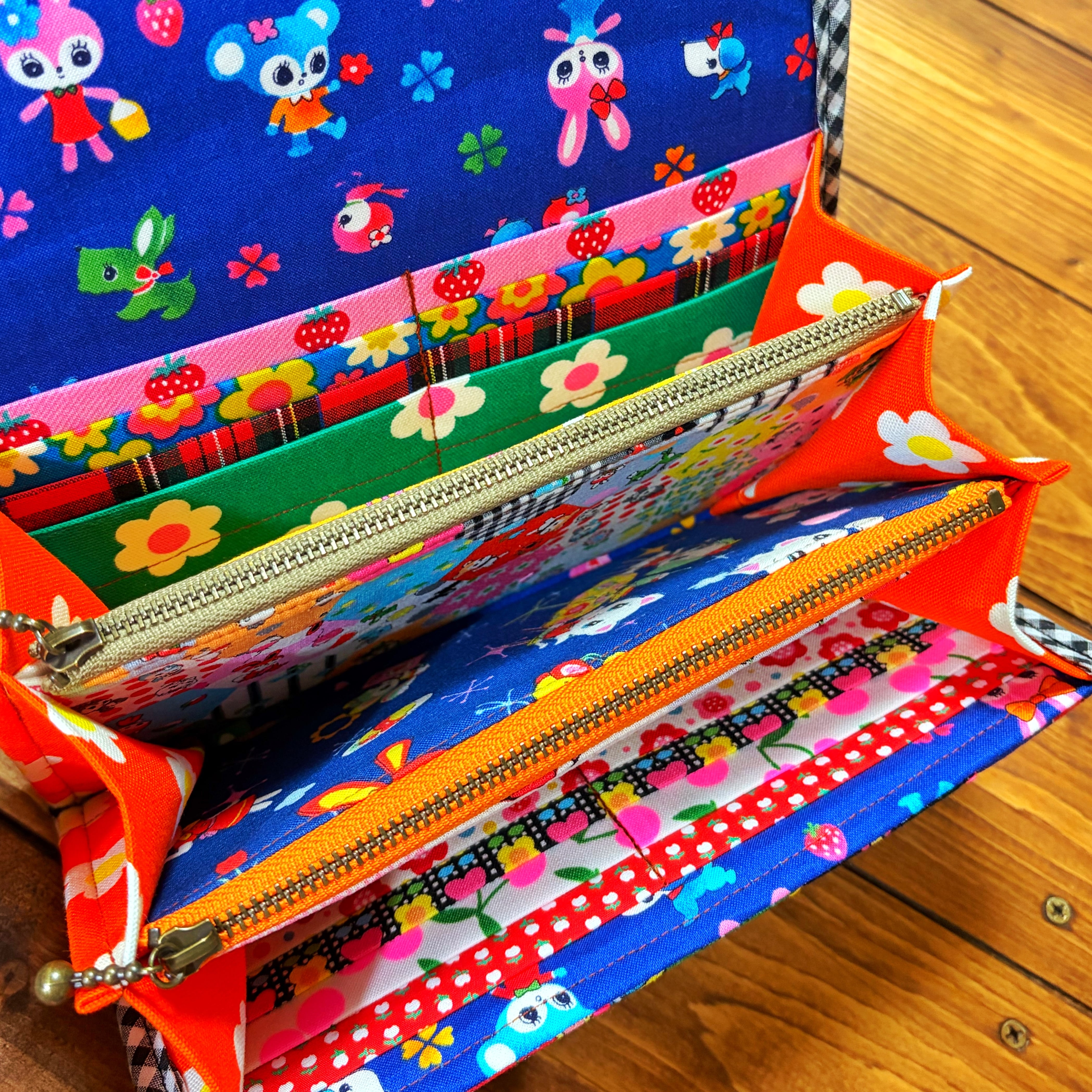 レトロアニマル柄の生地やチロリアンテープをぎゅっと詰め込んだ、見ているだけで気分が上がる“特別な長財布”です。