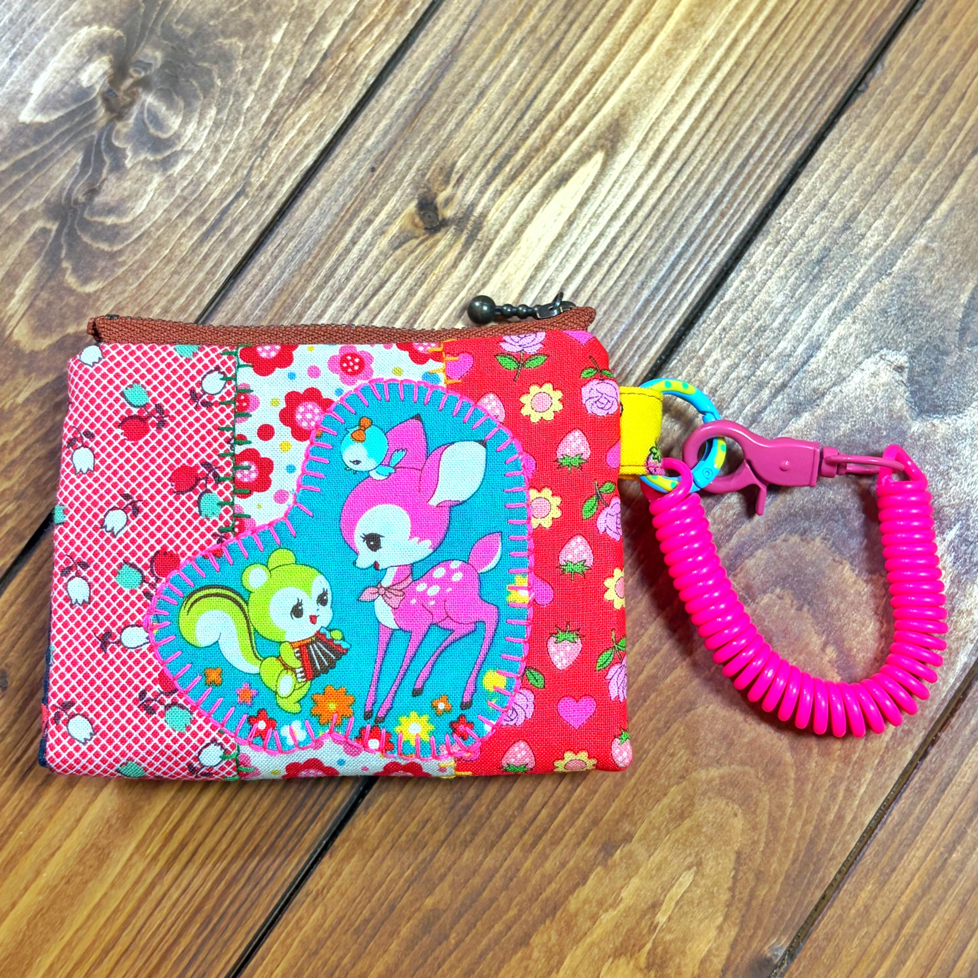 レトロポップな柄をぎゅぎゅっと詰め込んだ、カラフルで楽しい小さなお財布です〜。