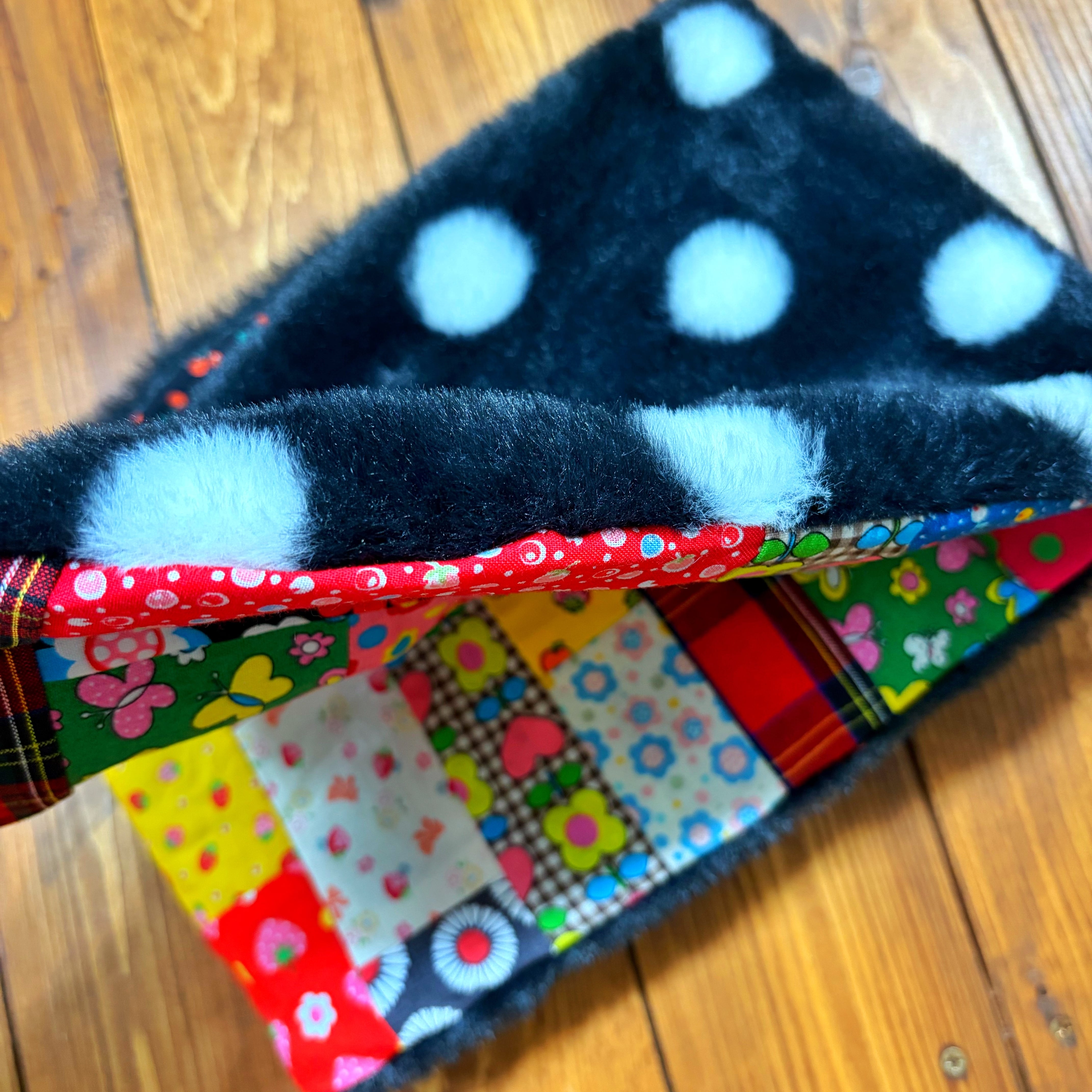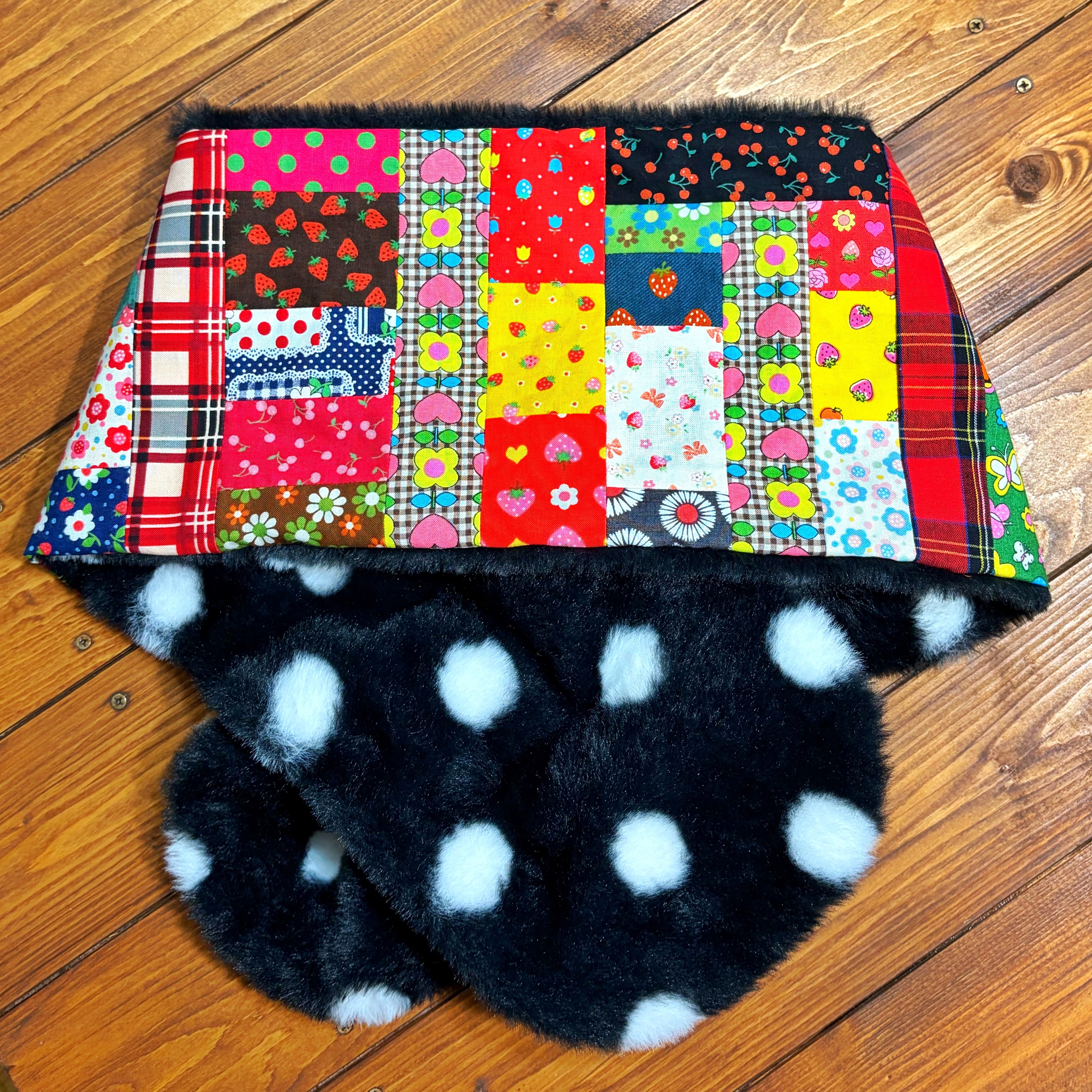廃盤の布を使用したパッチワーク仕立てで、カラフルなデザインが一つ一つ異なり、まさに“世界に一つだけ”!