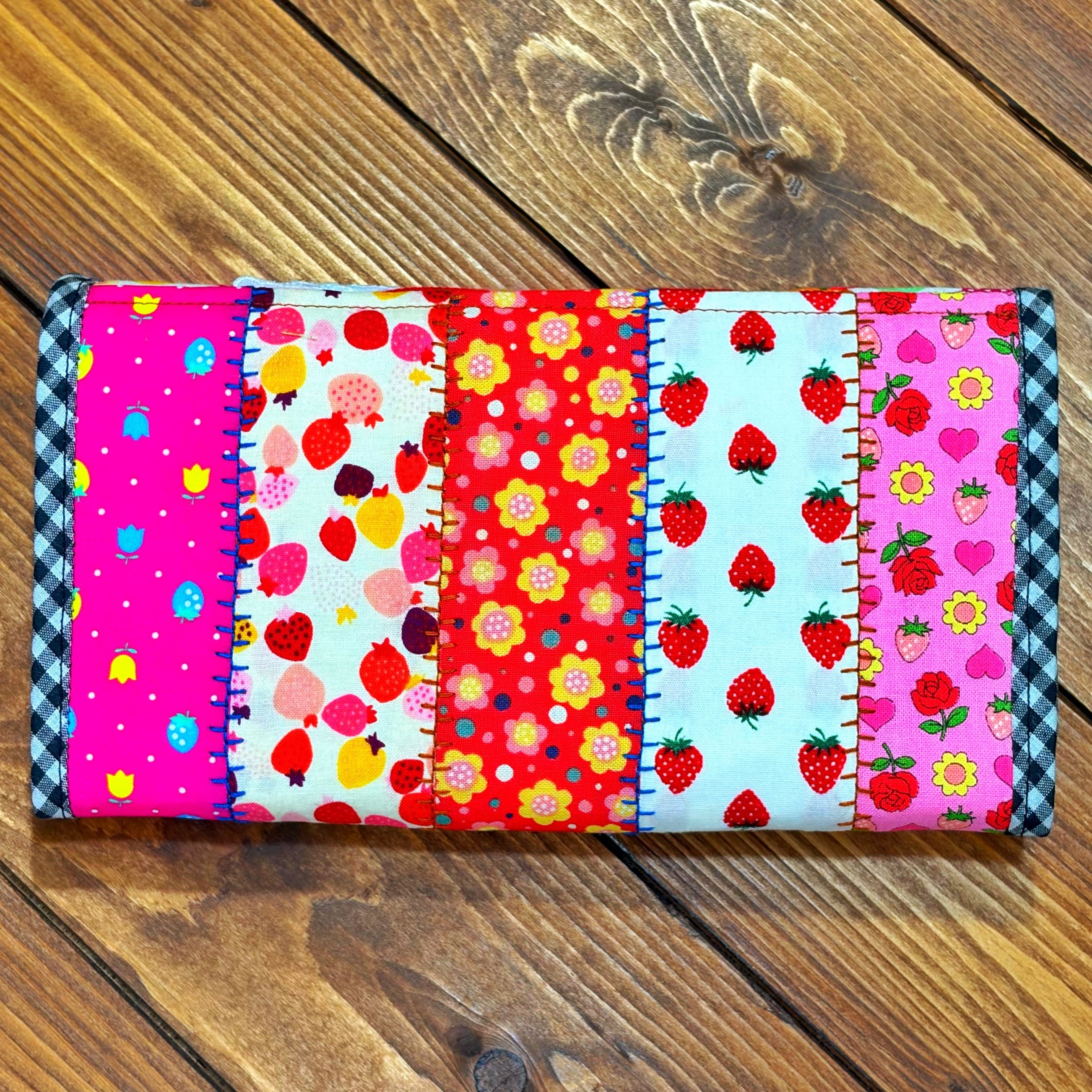 廃盤のレトロ柄の生地やチロリアンテープをぎゅっと詰め込んだ、見ているだけで気分が上がる“特別な長財布”です。