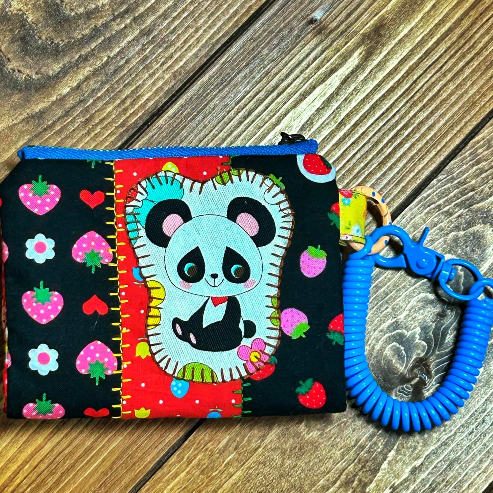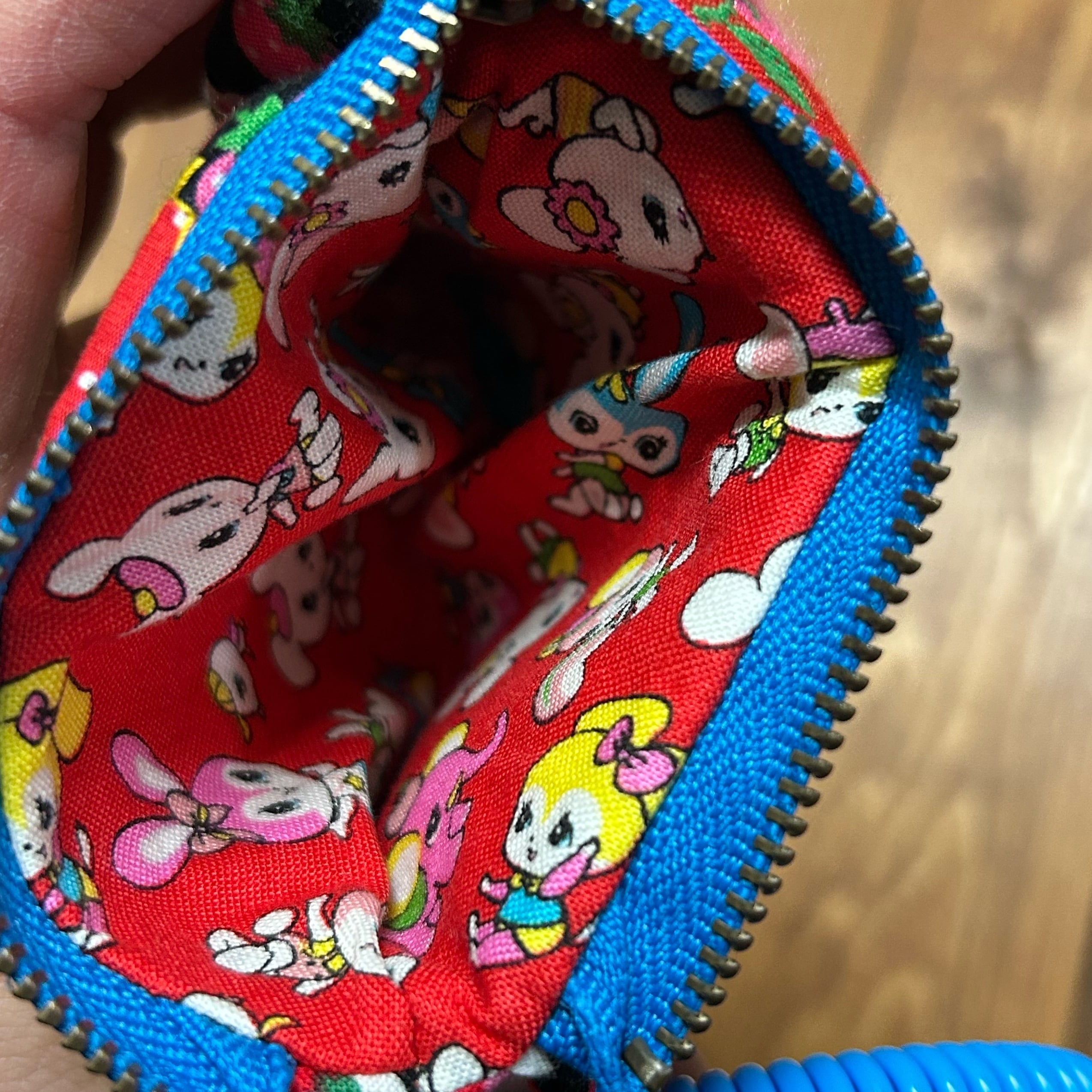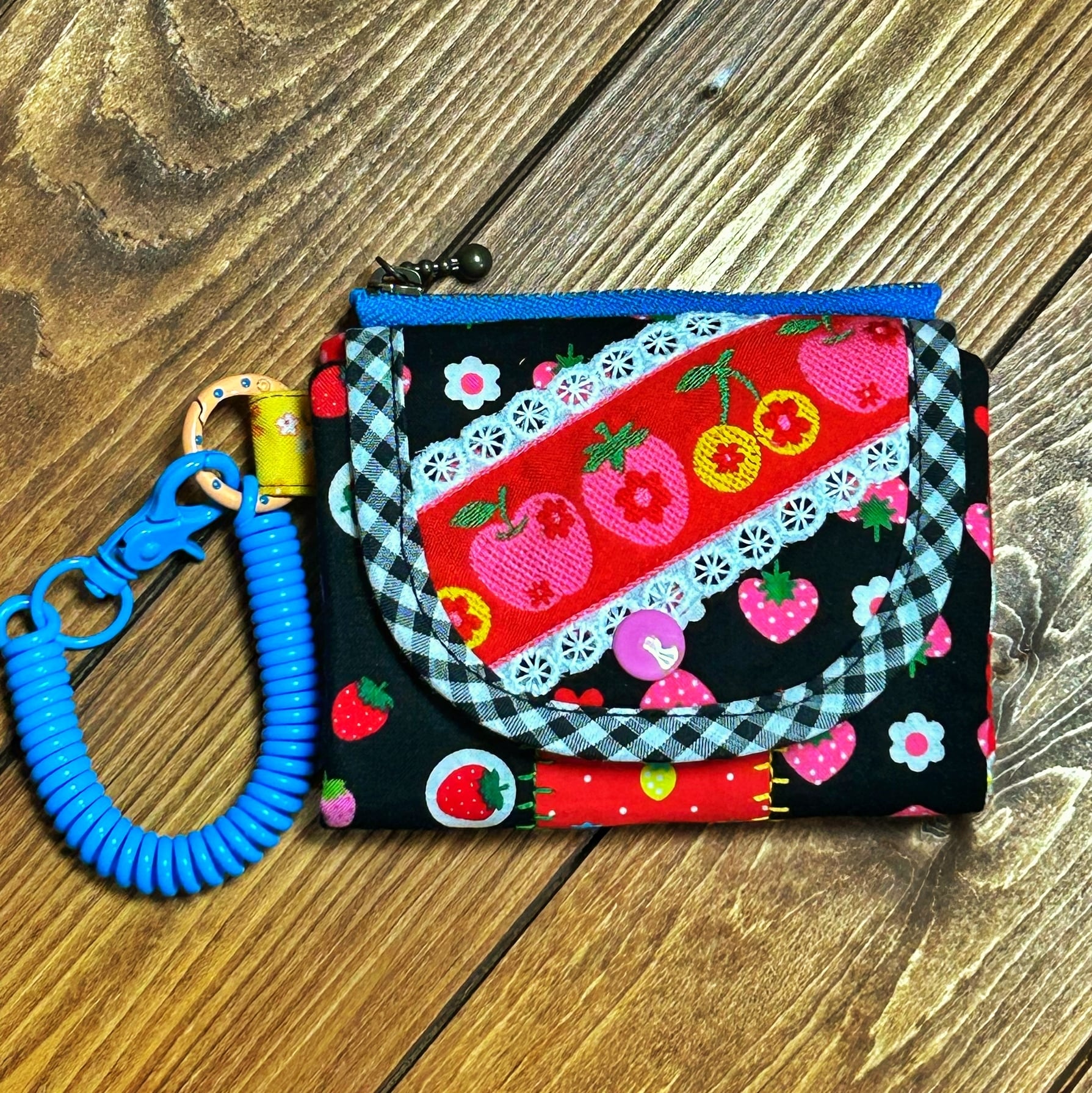 レトロポップな柄をぎゅぎゅっと詰め込んだ、カラフルで楽しい小さなお財布です〜。