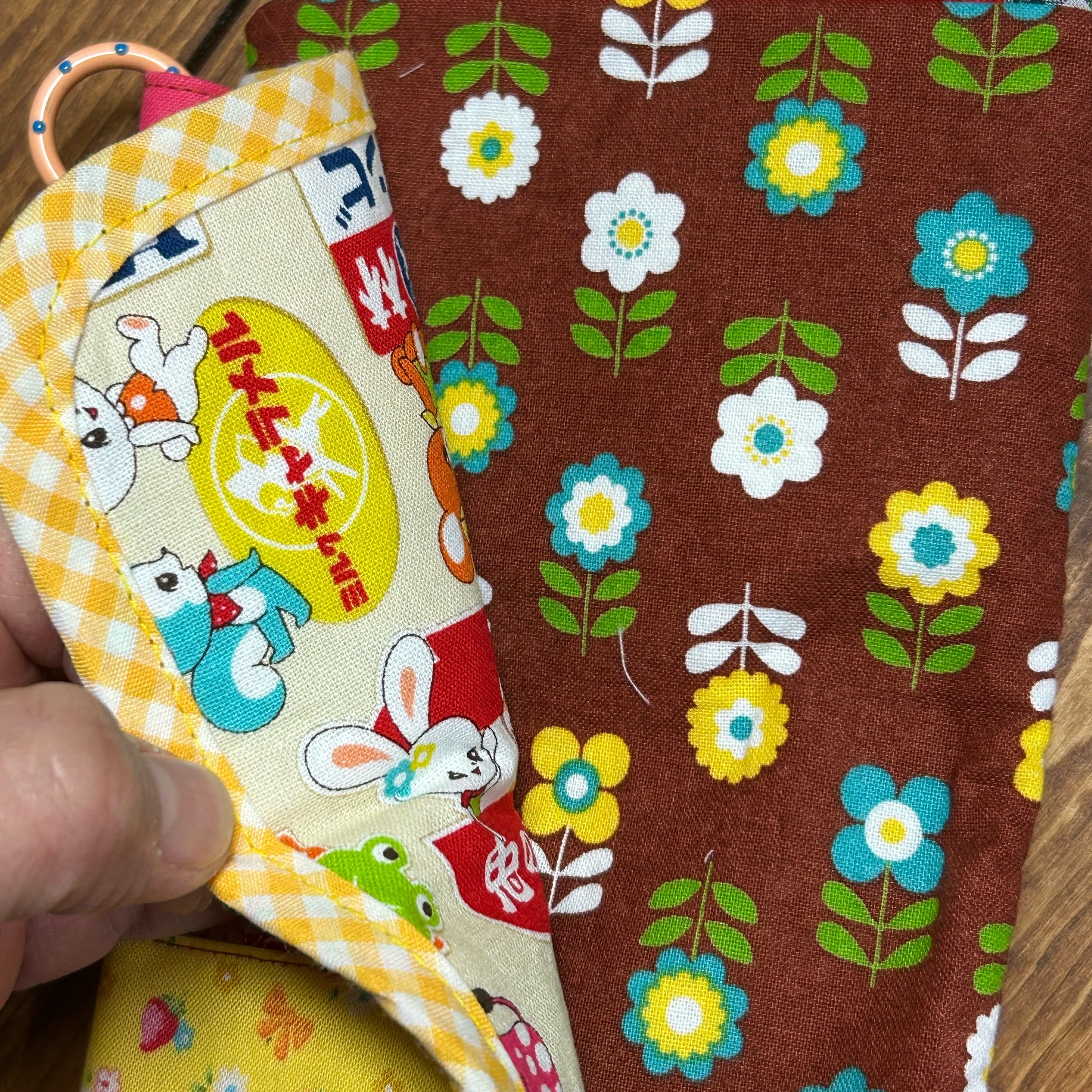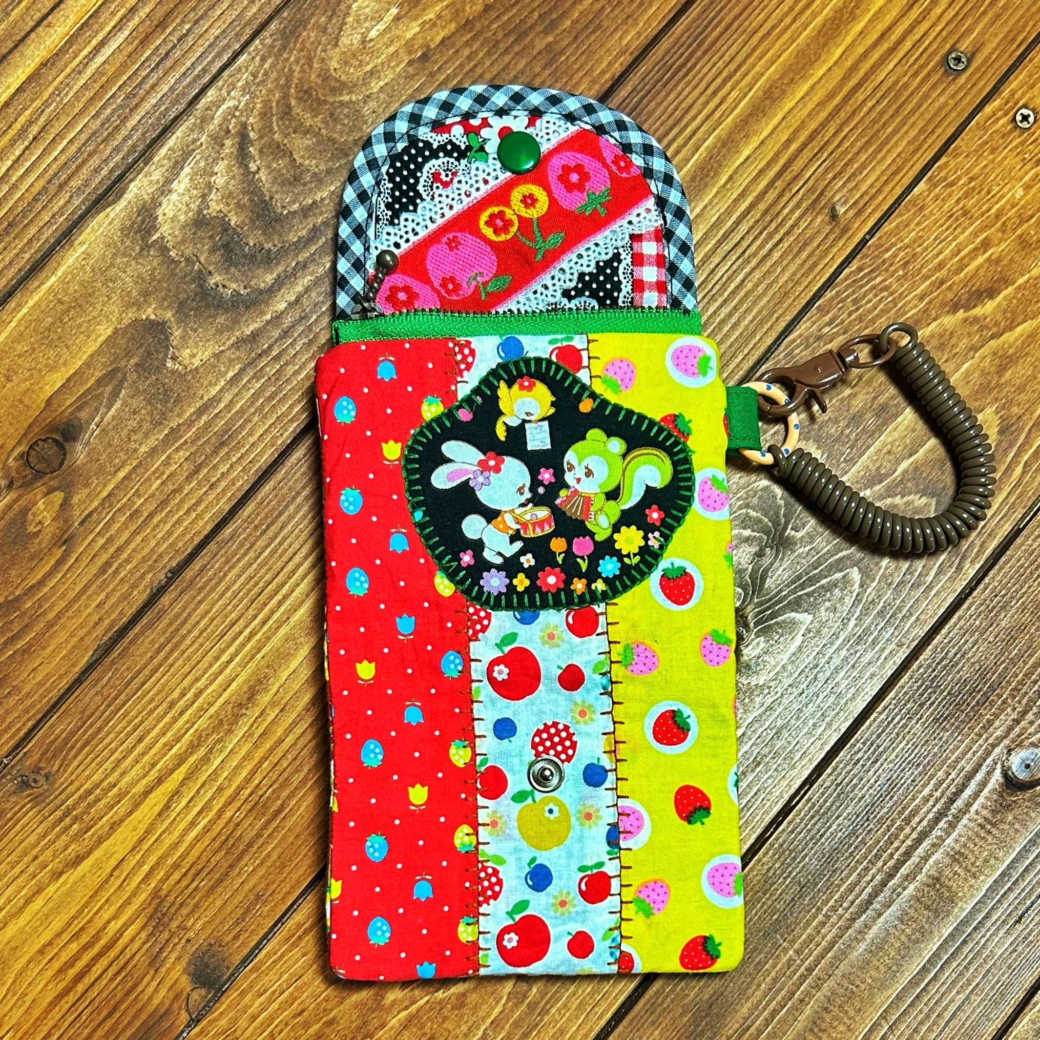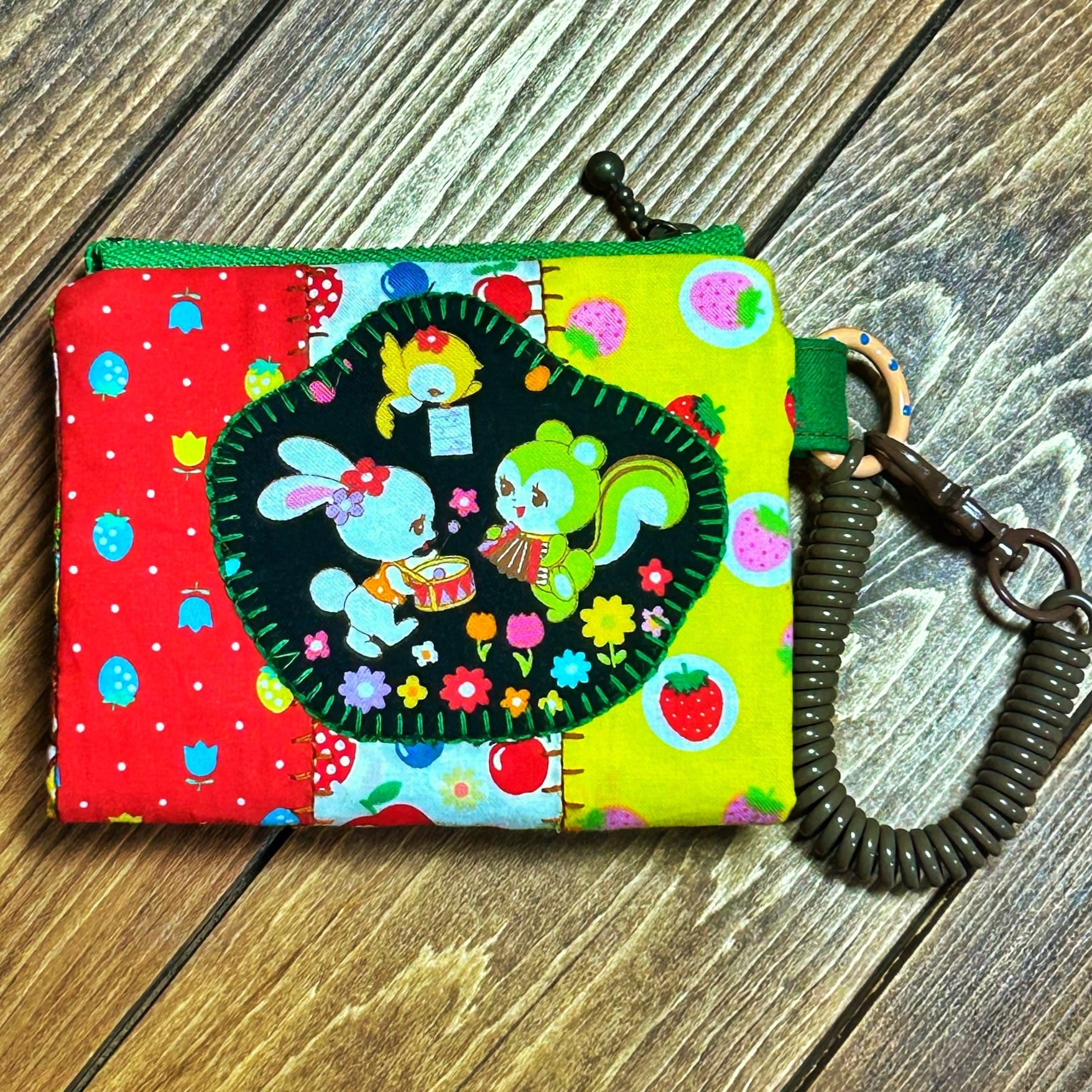 レトロポップな柄をぎゅぎゅっと詰め込んだ、カラフルで楽しい小さなお財布です〜。