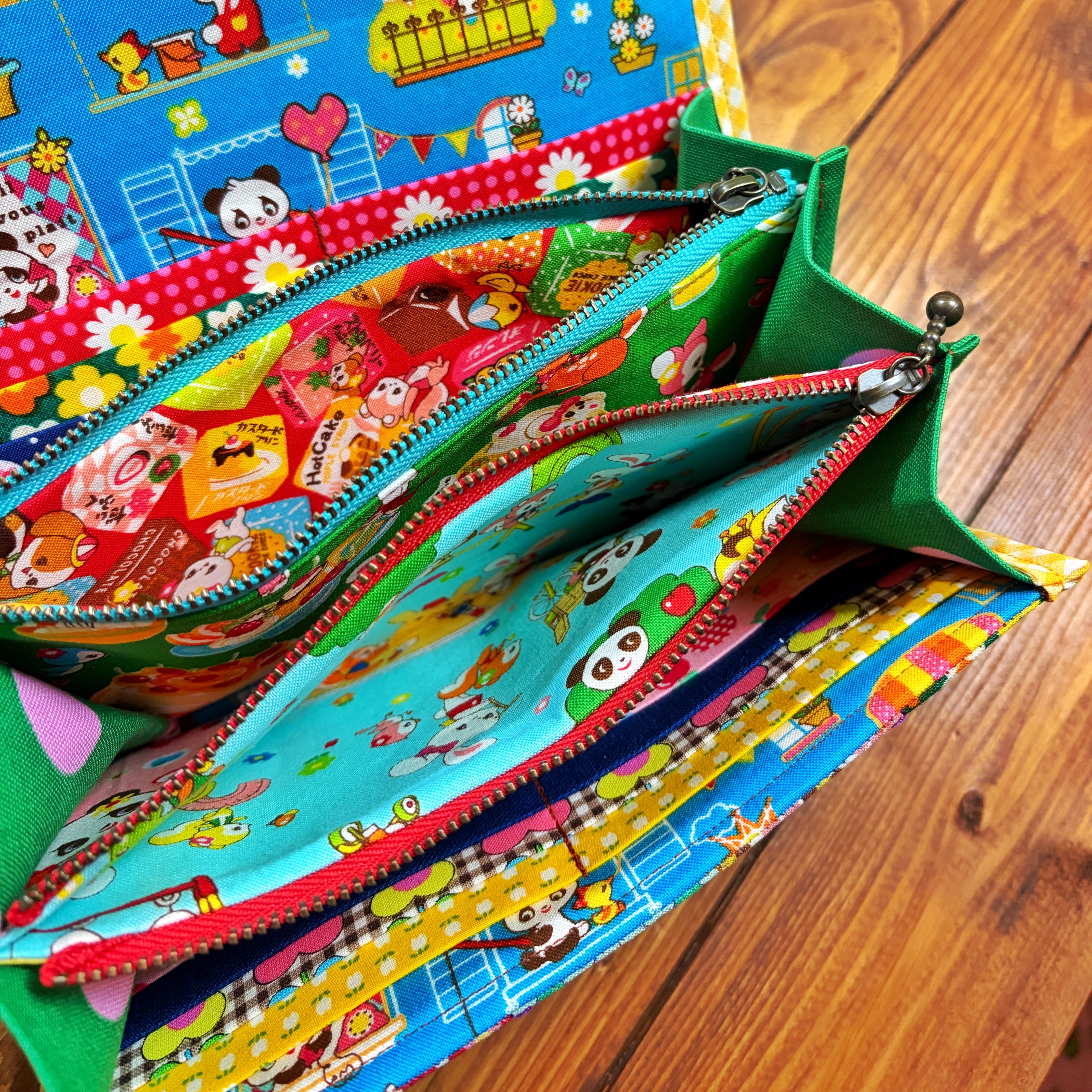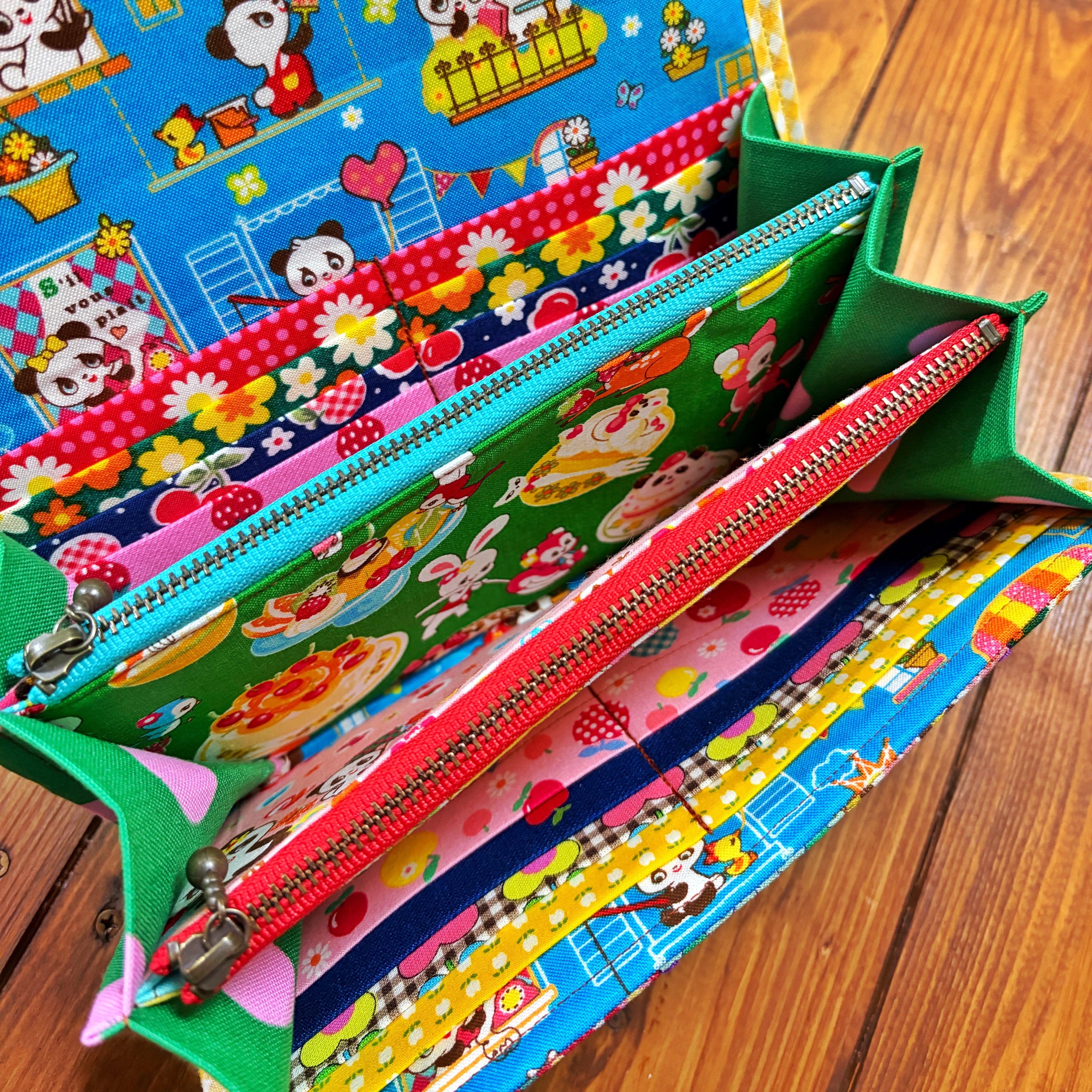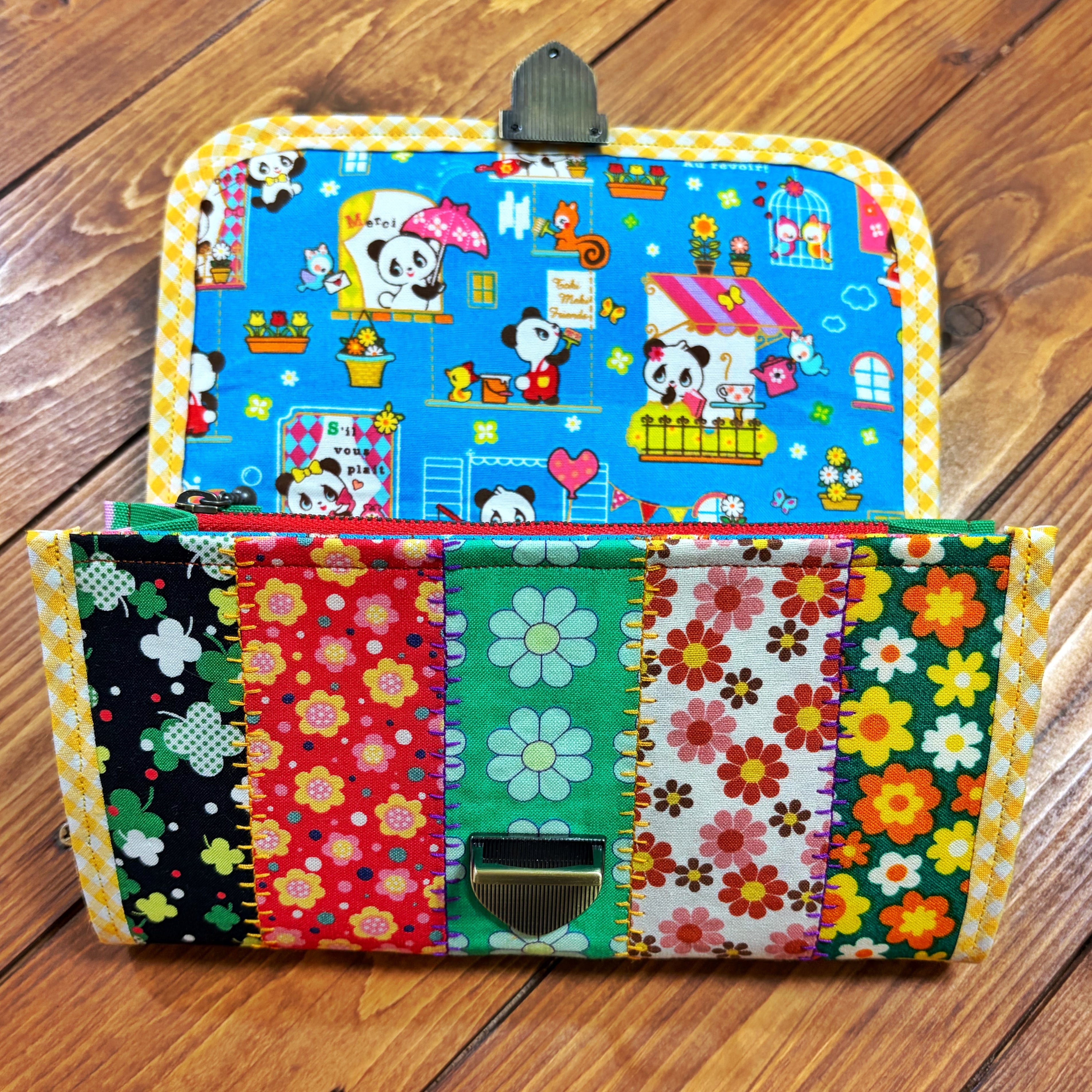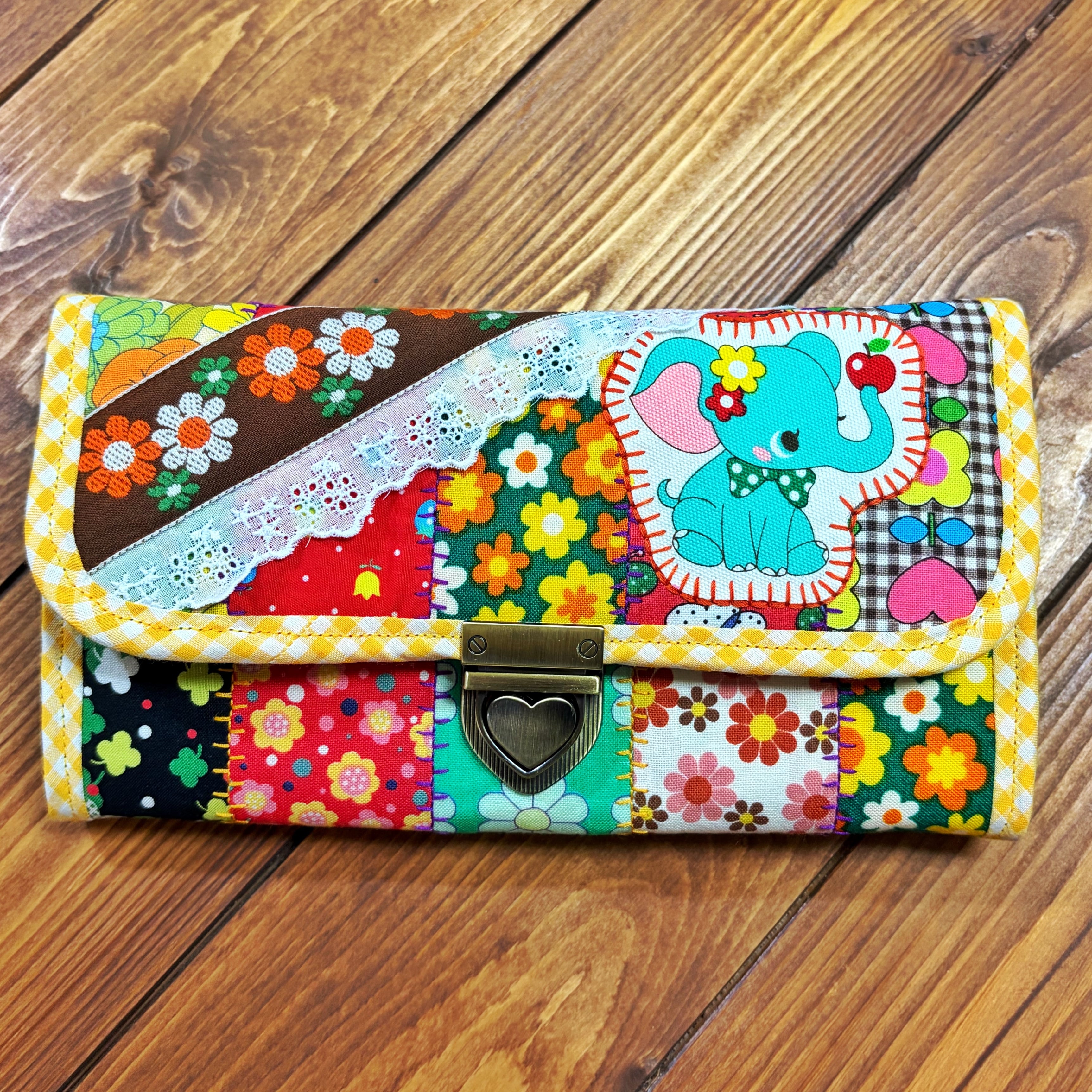 廃盤のレトロ柄の生地やチロリアンテープをぎゅっと詰め込んだ、見ているだけで気分が上がる“特別な長財布”です。