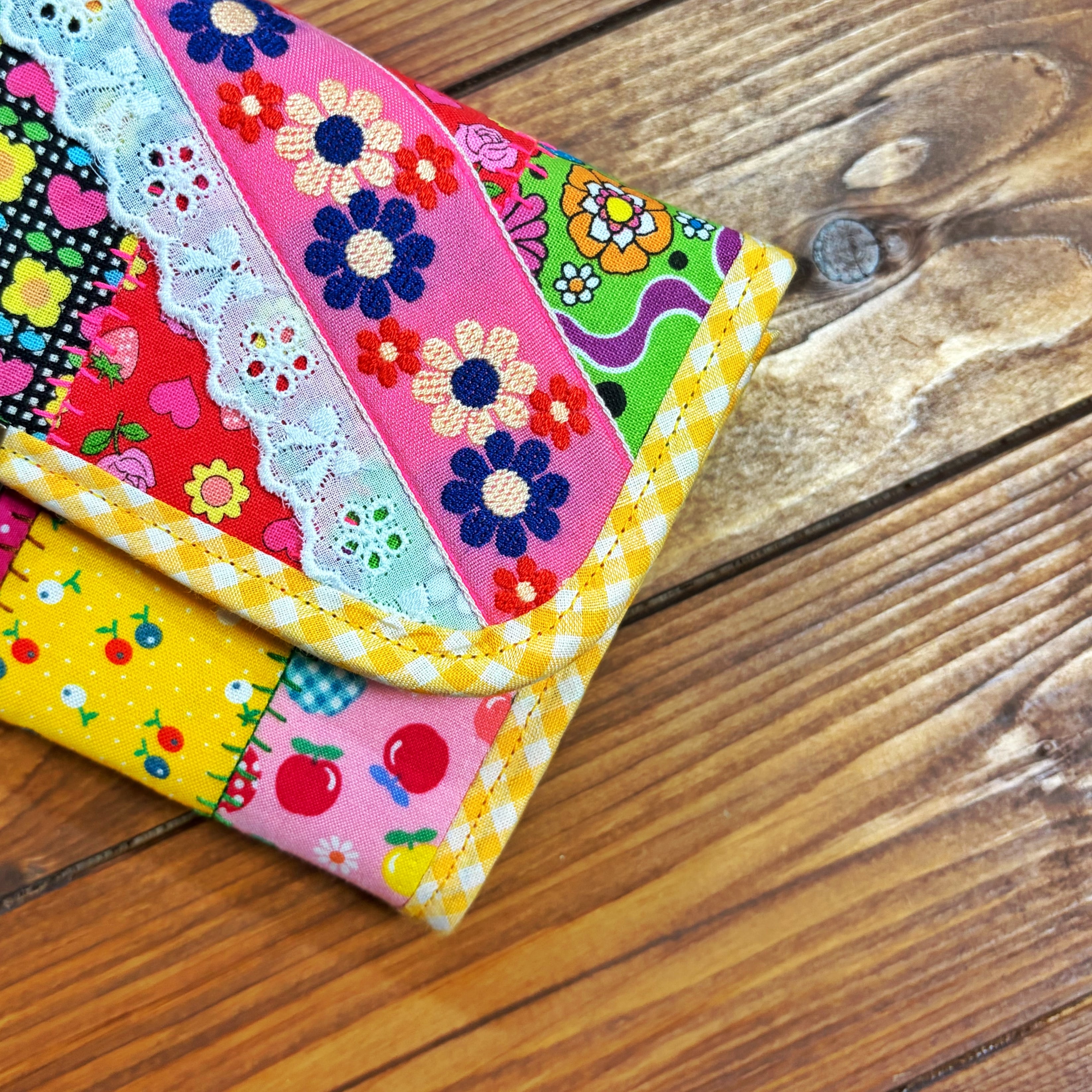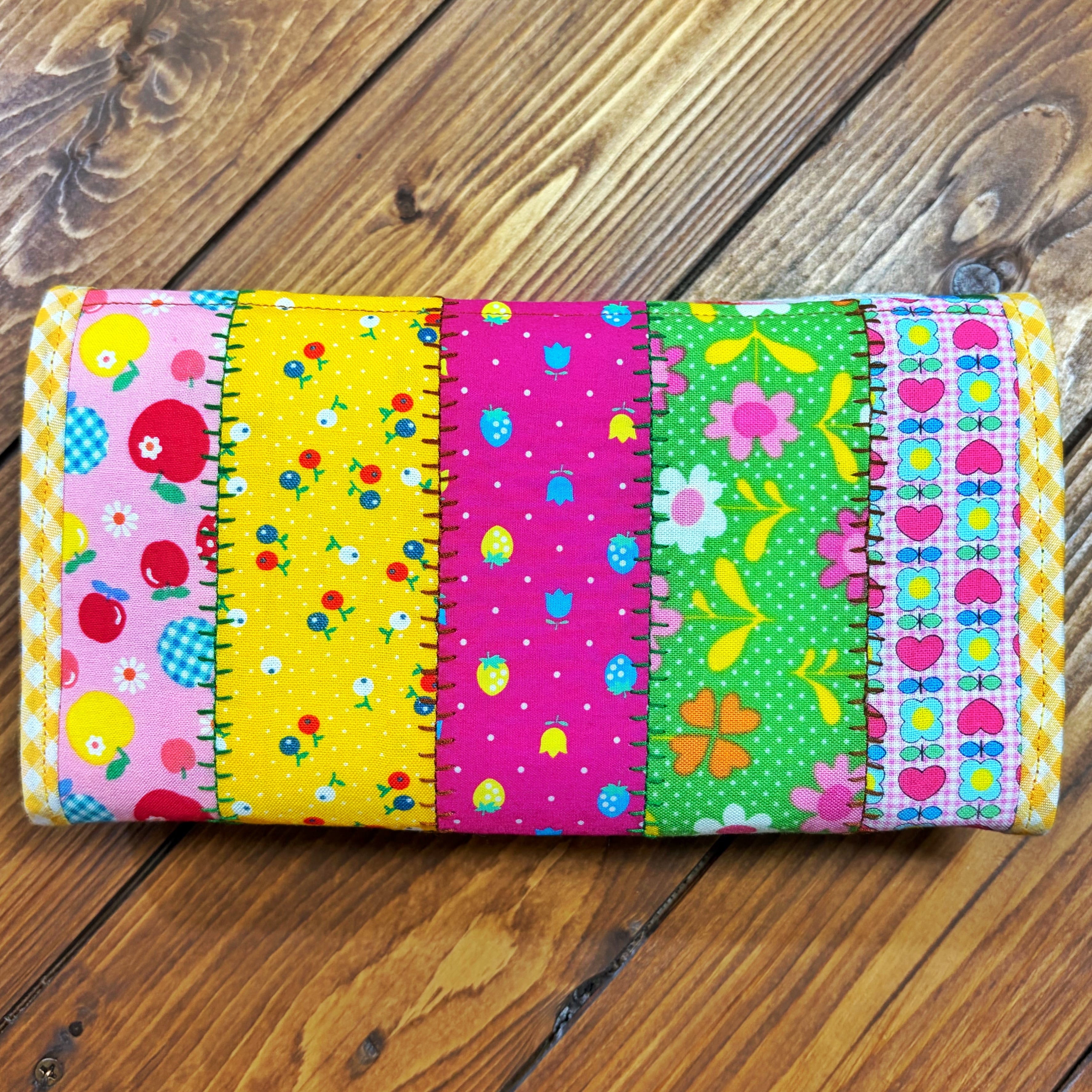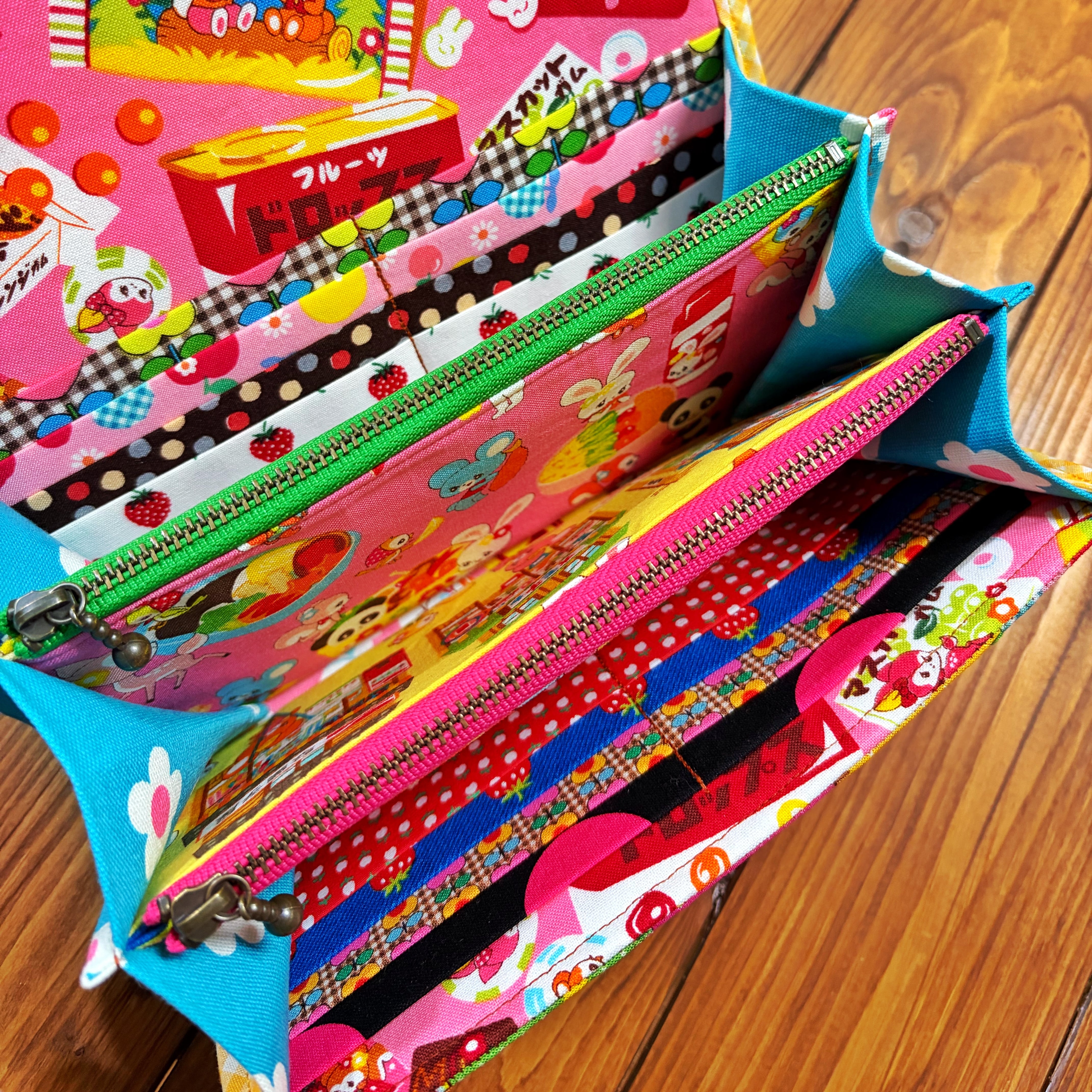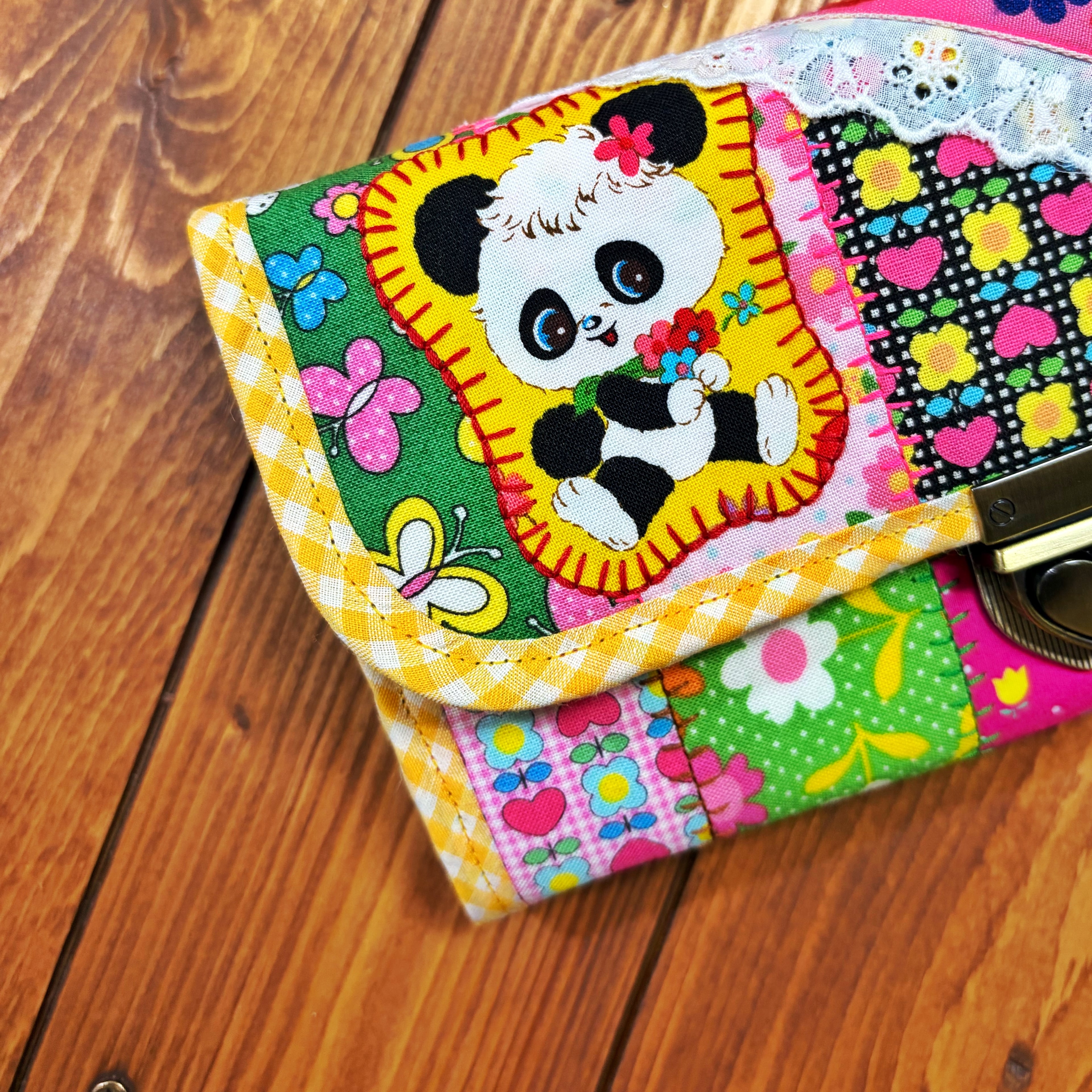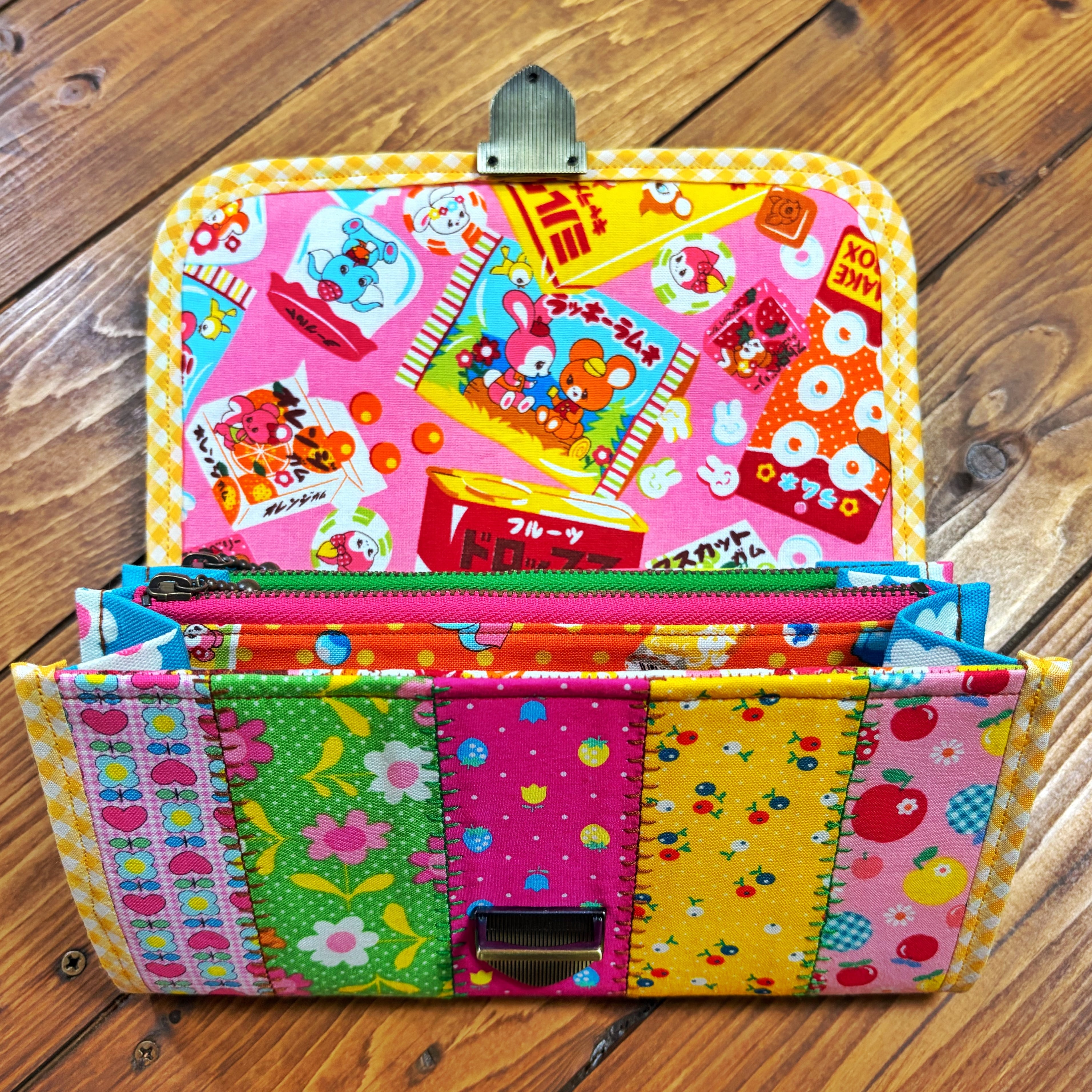 廃盤のレトロ柄の生地やチロリアンテープをぎゅっと詰め込んだ、見ているだけで気分が上がる“特別な長財布”です。