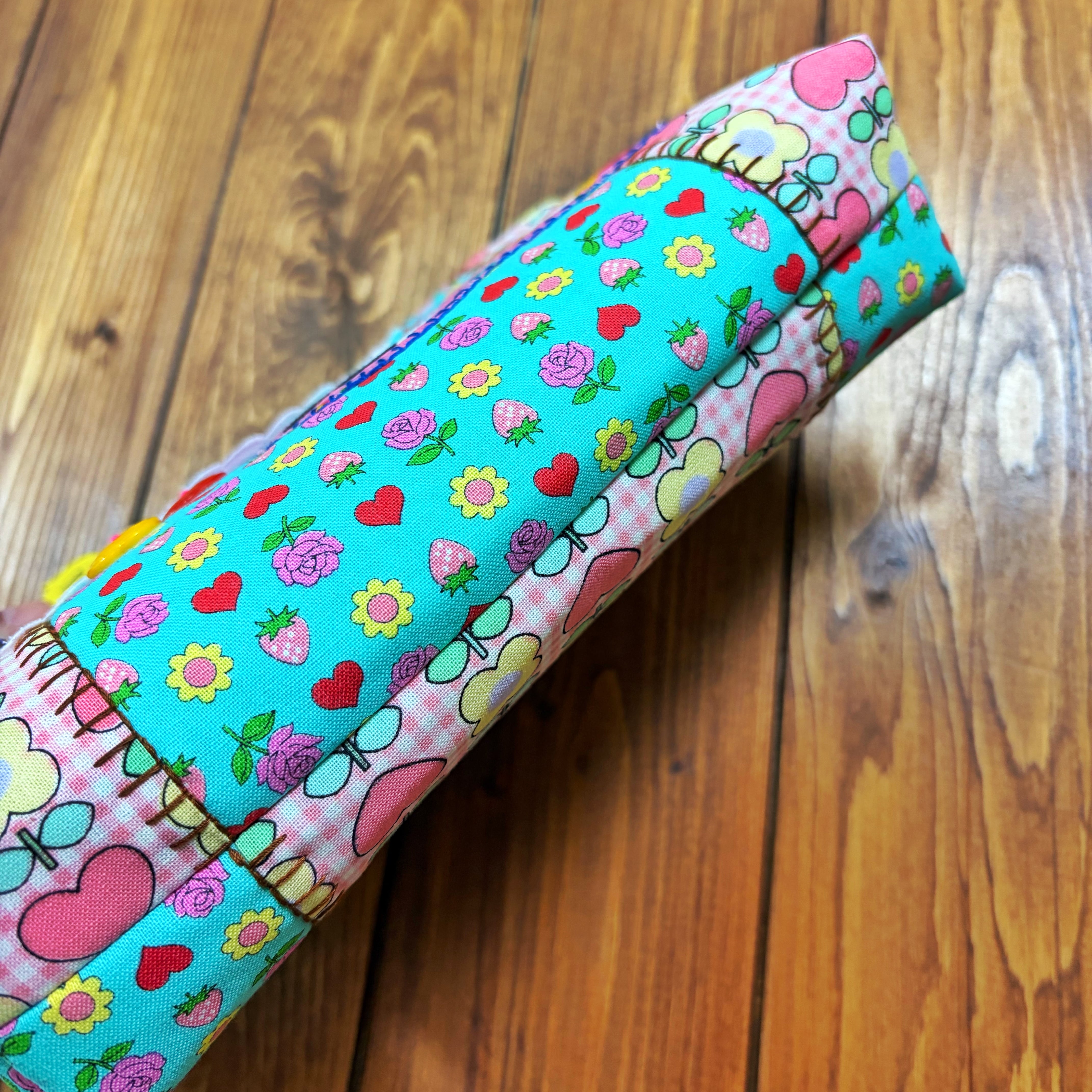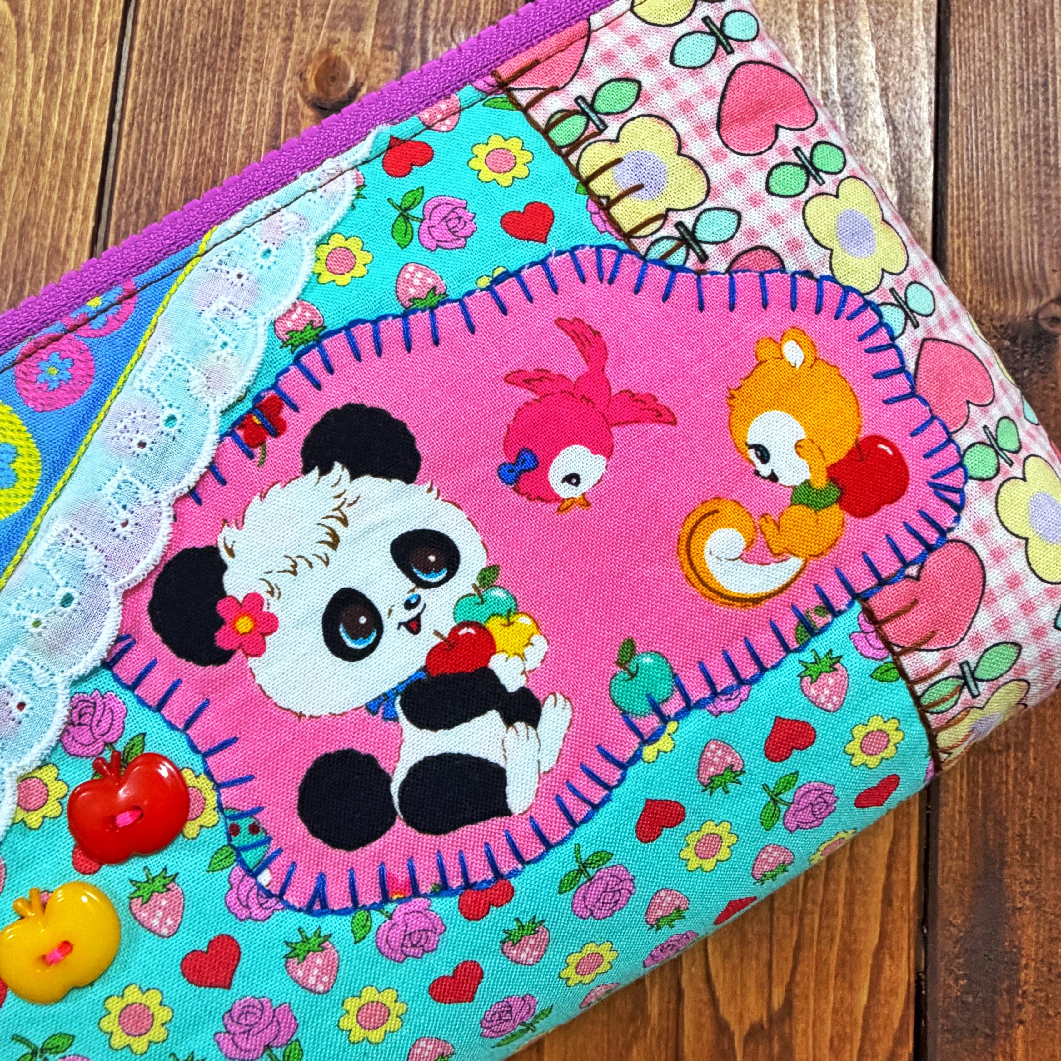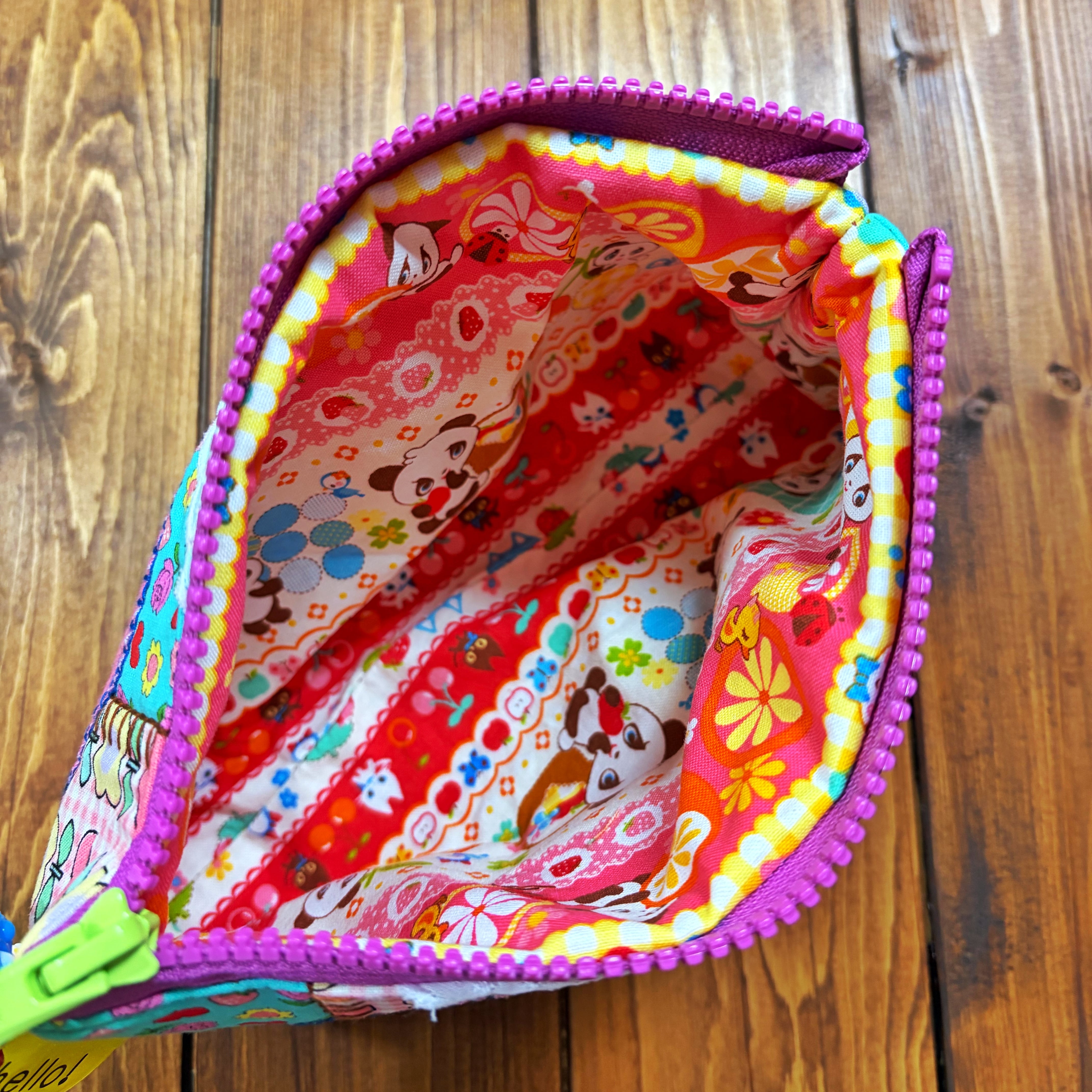 個性的な生地で作られたこのポーチは、一目見ただけで心を掴まれます。
