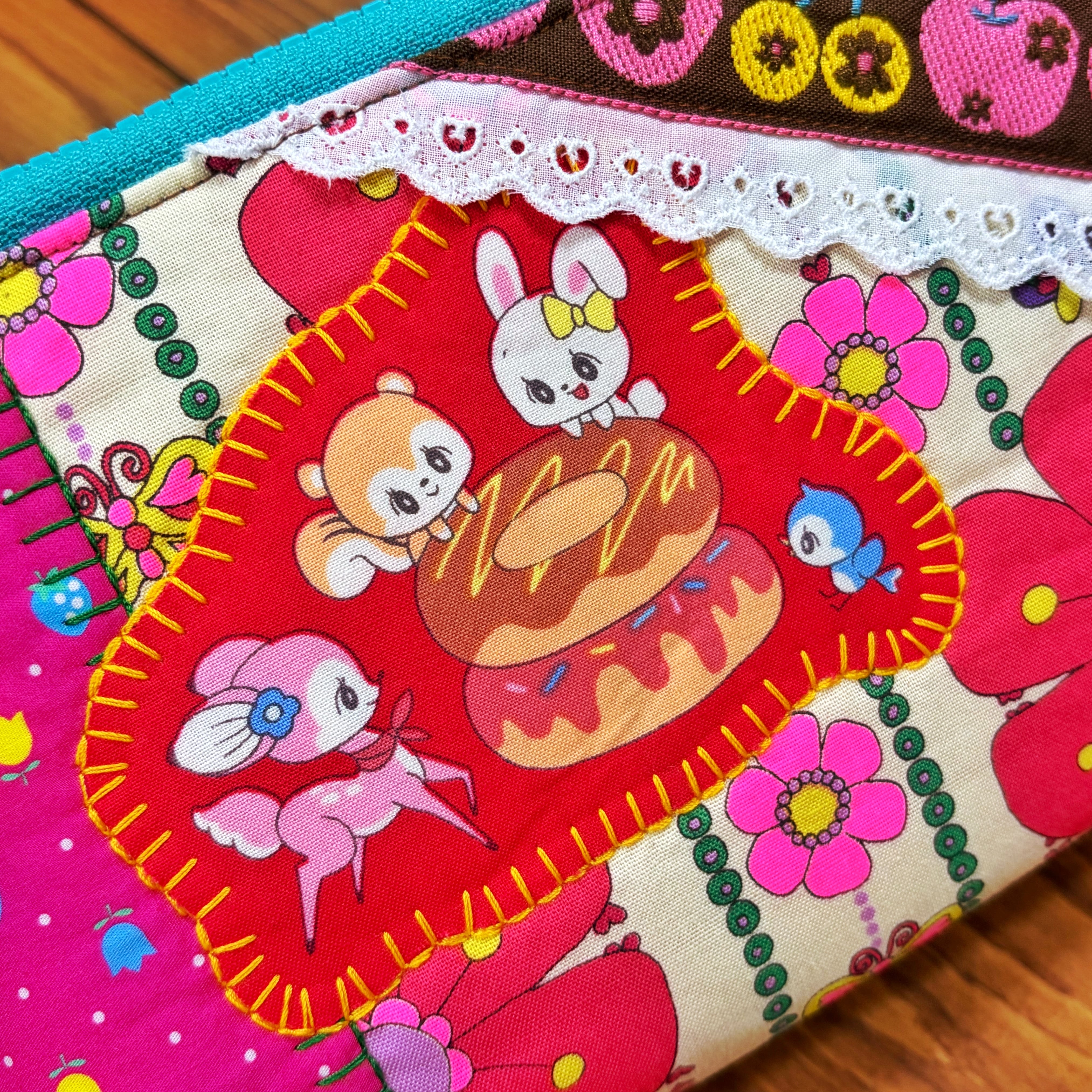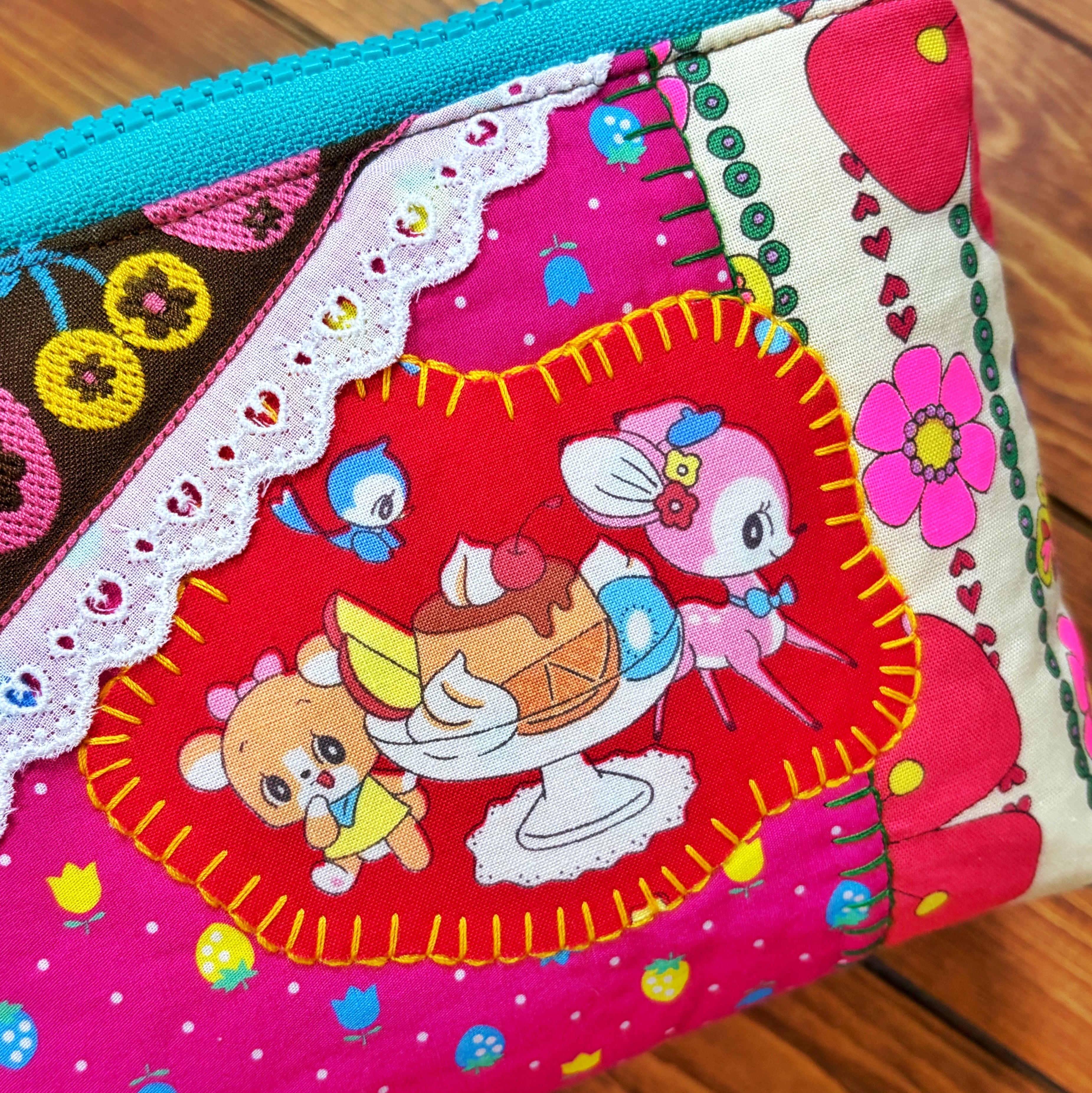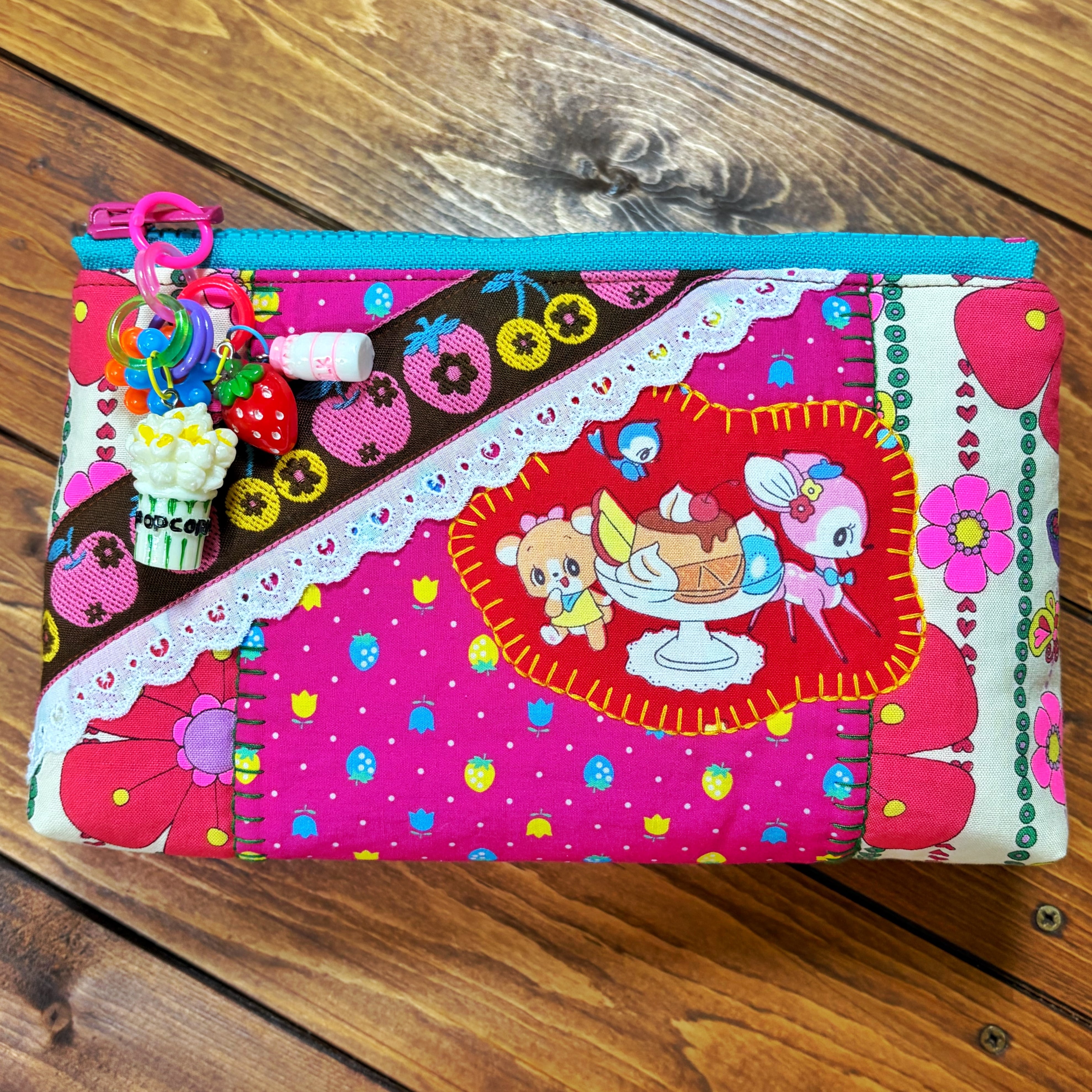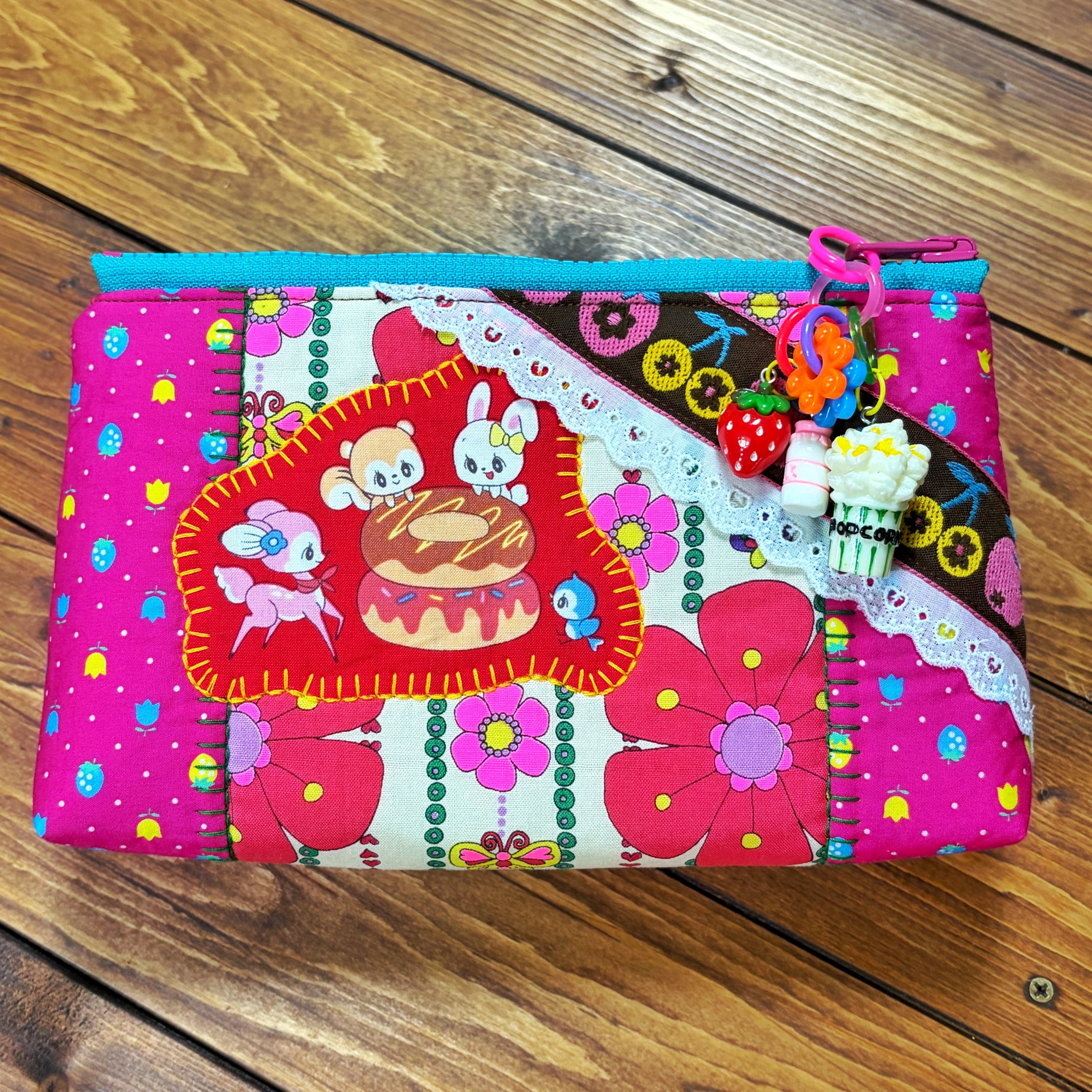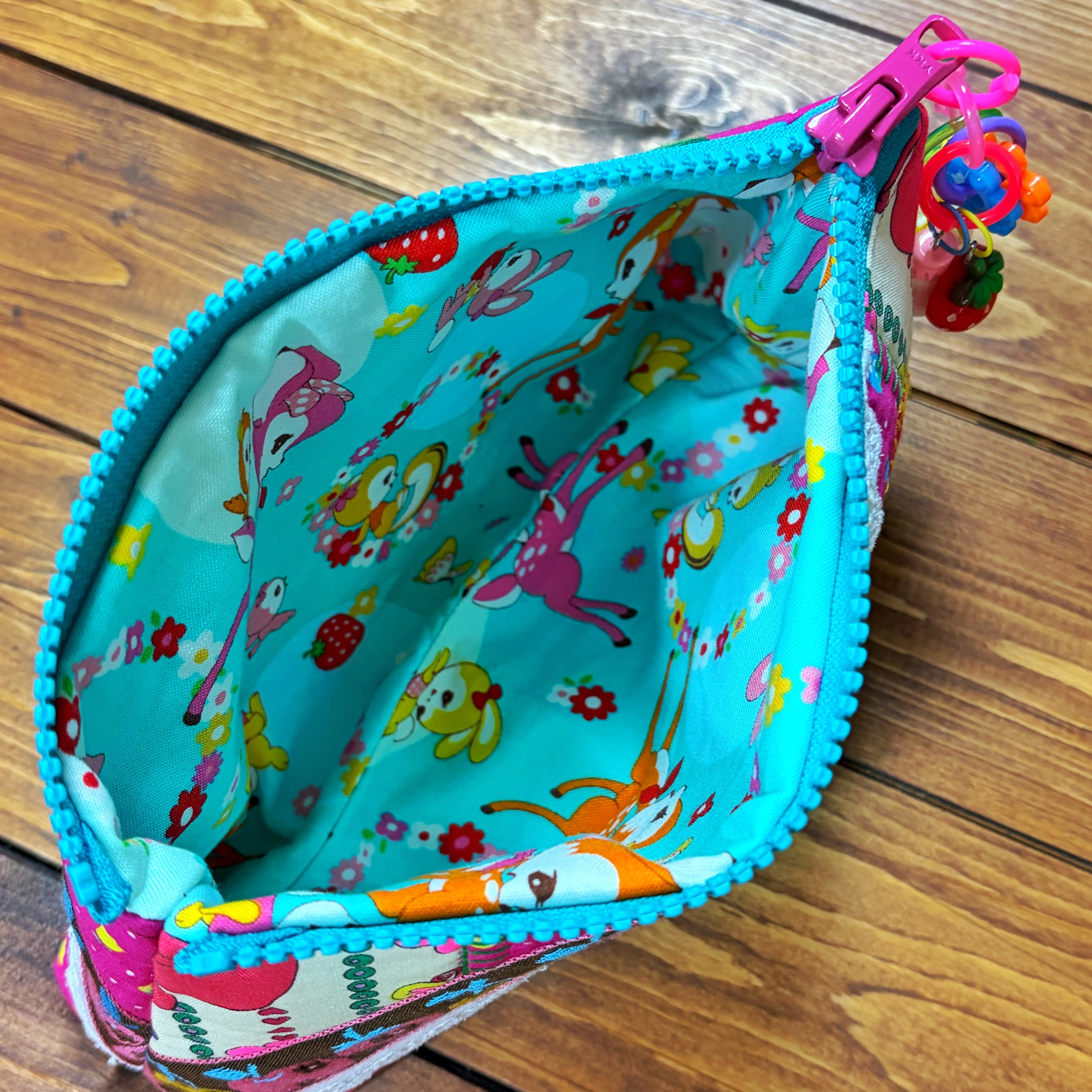 個性的な生地で作られたこのポーチは、一目見ただけで心を掴まれます。