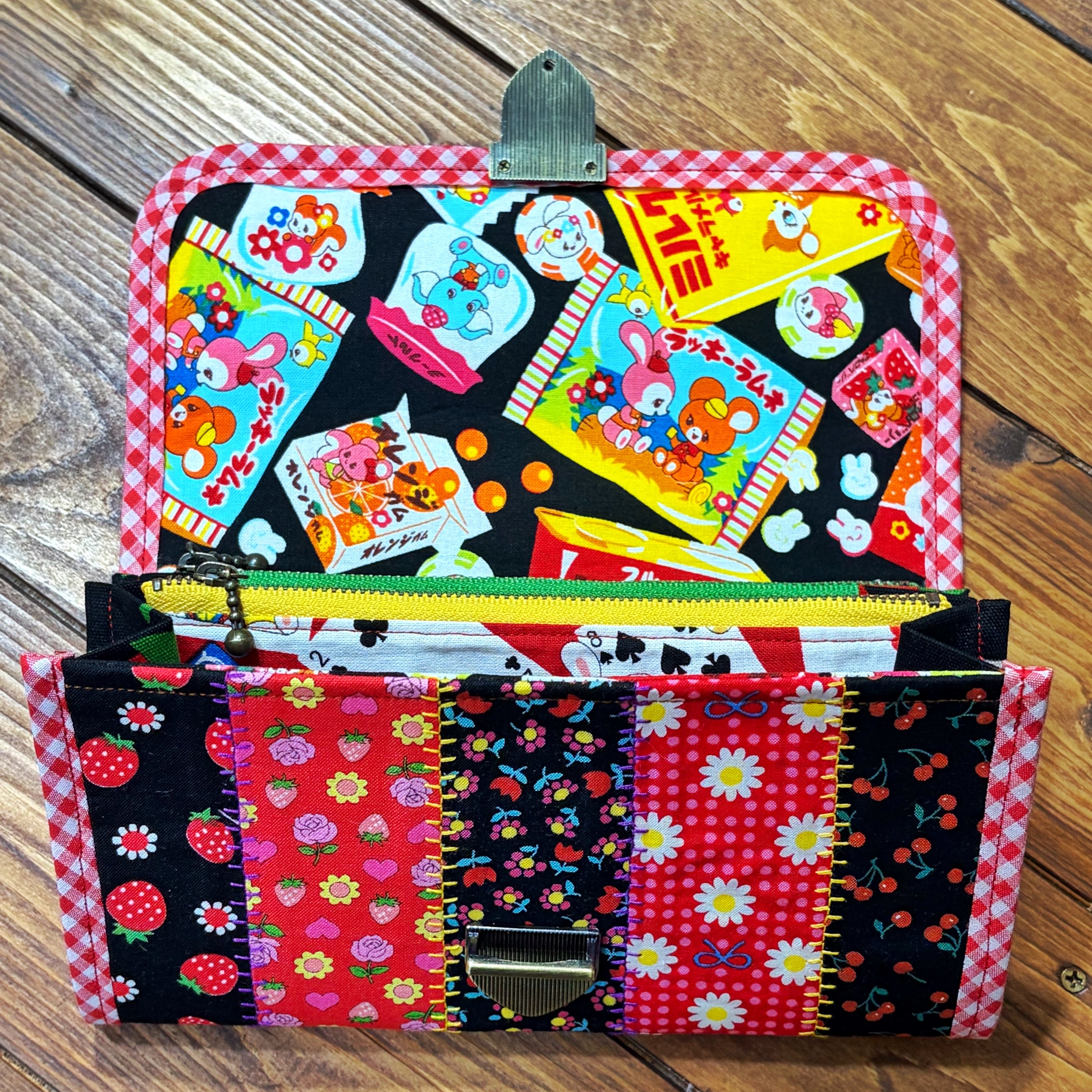 廃盤のレトロ柄の生地やチロリアンテープをぎゅっと詰め込んだ、見ているだけで気分が上がる“特別な長財布”です。
