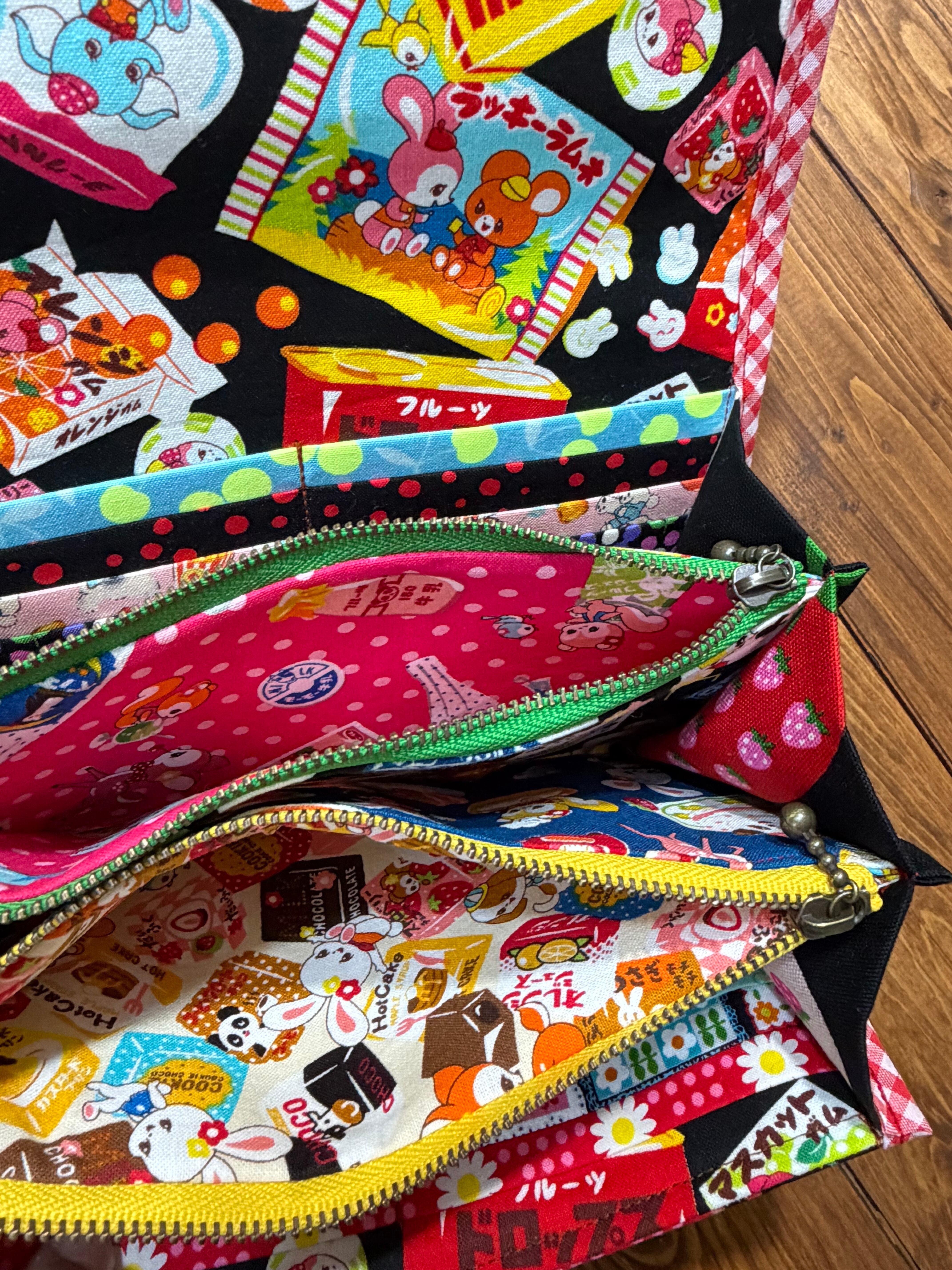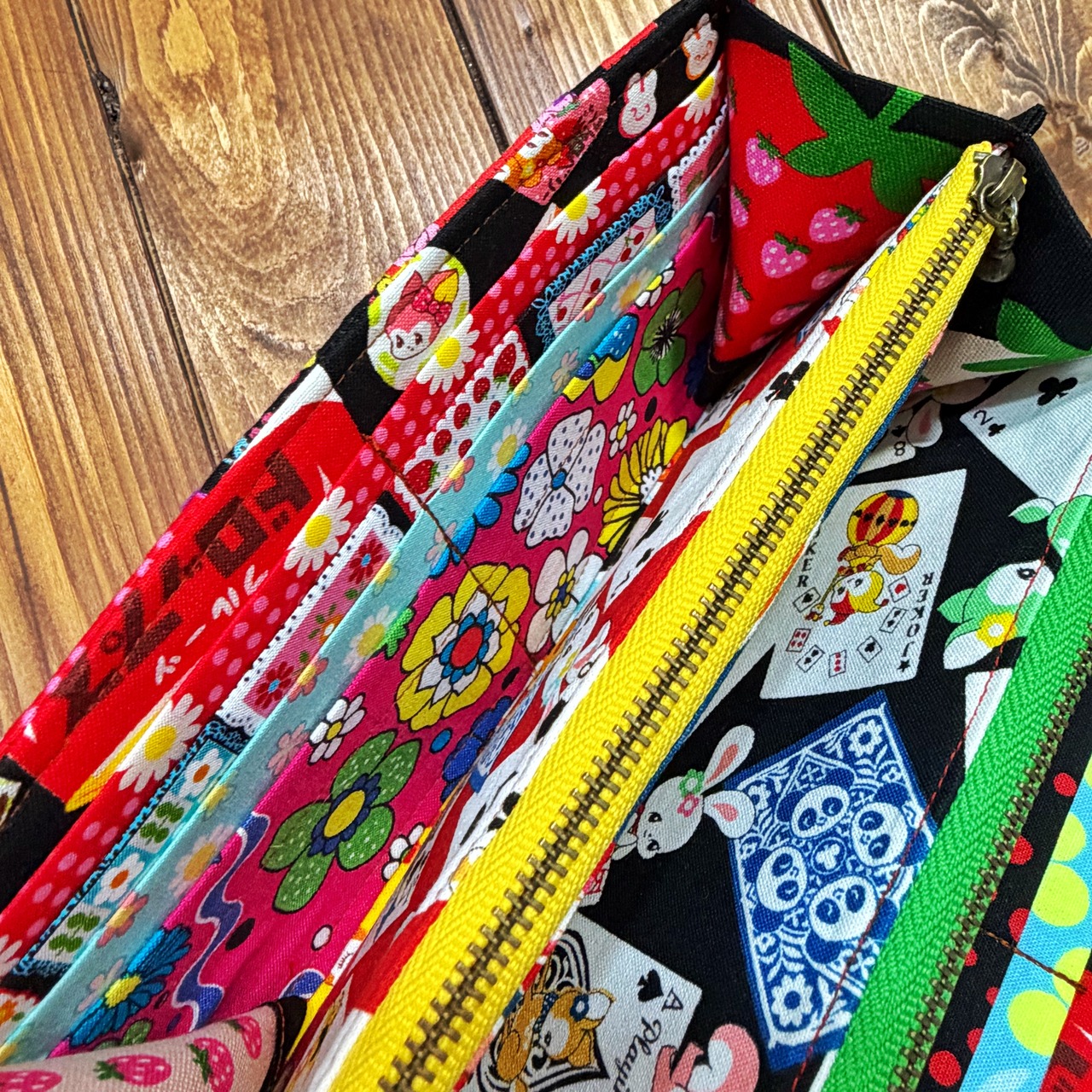 ⚫︎カードポケット、仕切りポケット、ファスナーポケット部分には接着芯(厚手)を使用。