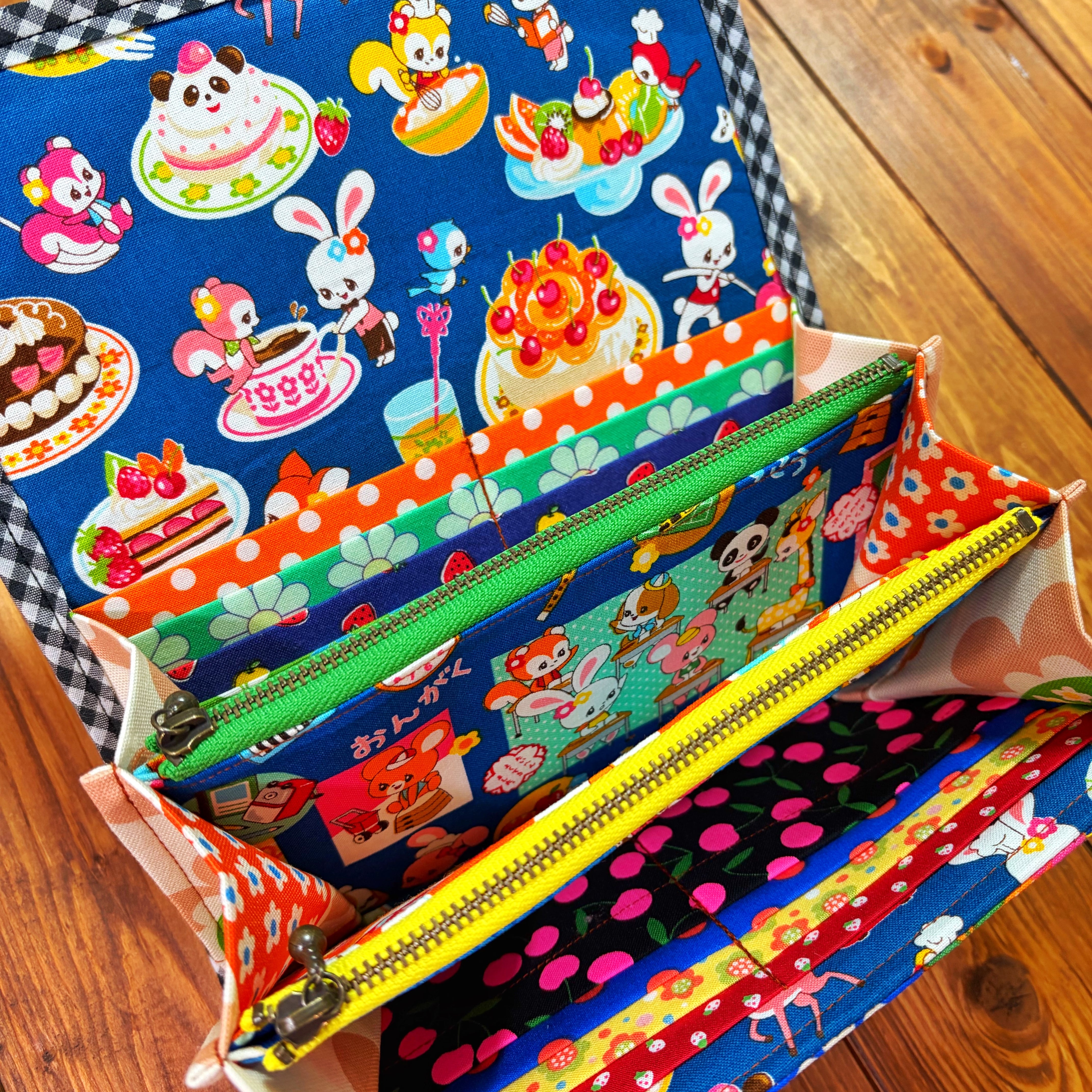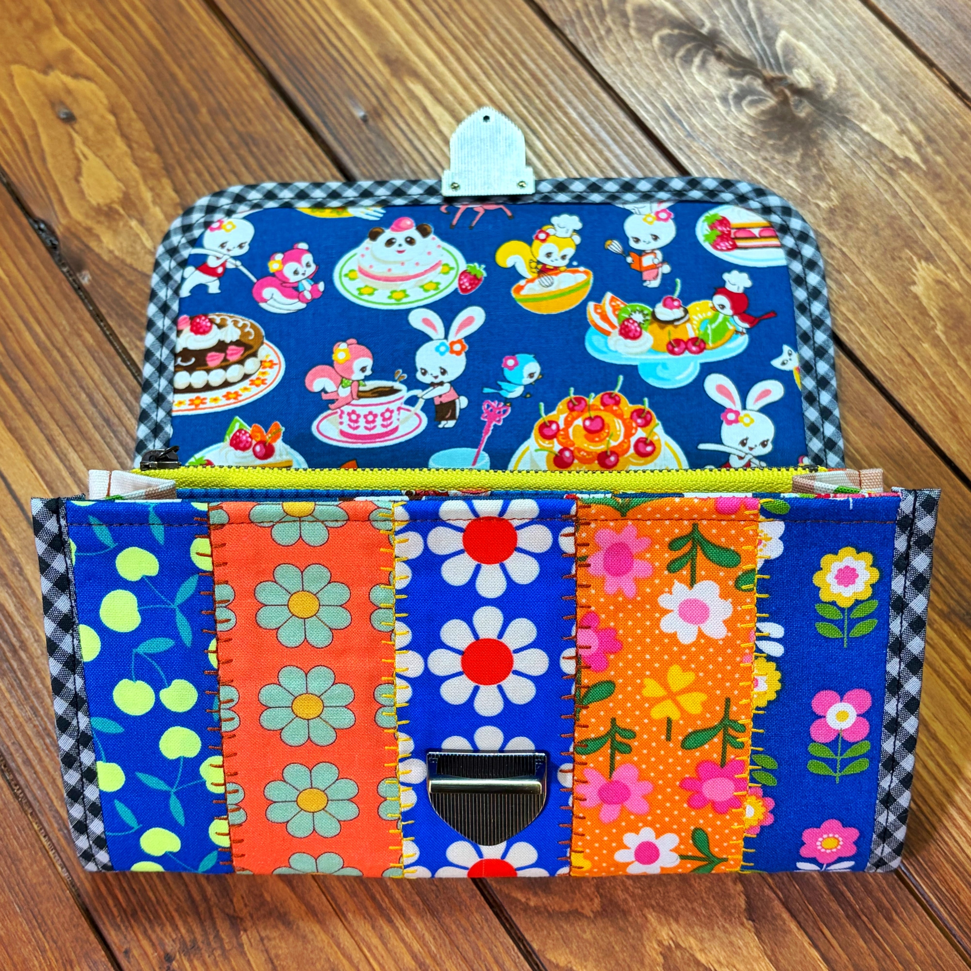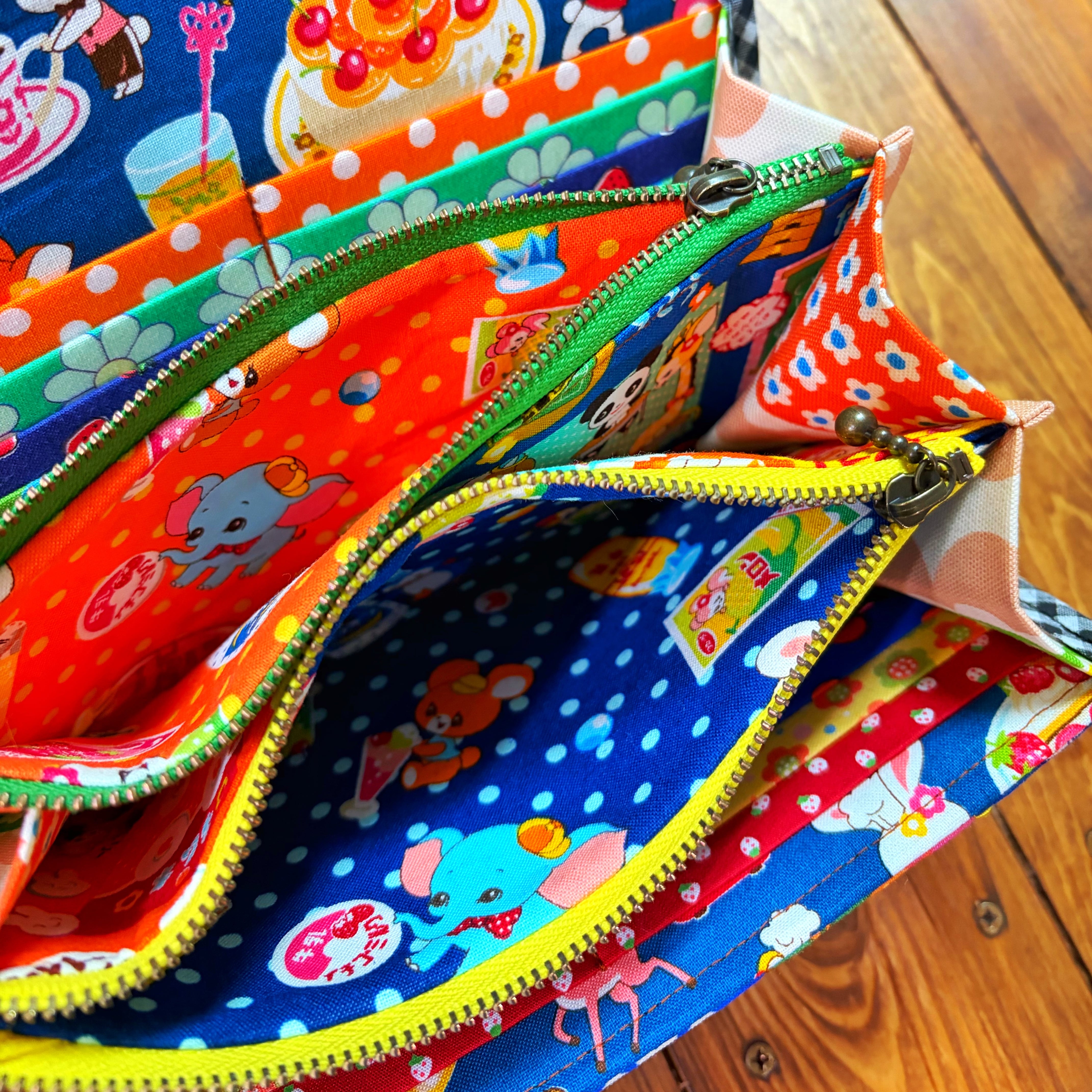 レトロポップ生地にチロリアンテープをぎゅっと詰め込んだ、見ているだけで気分が上がる“特別な長財布”です。