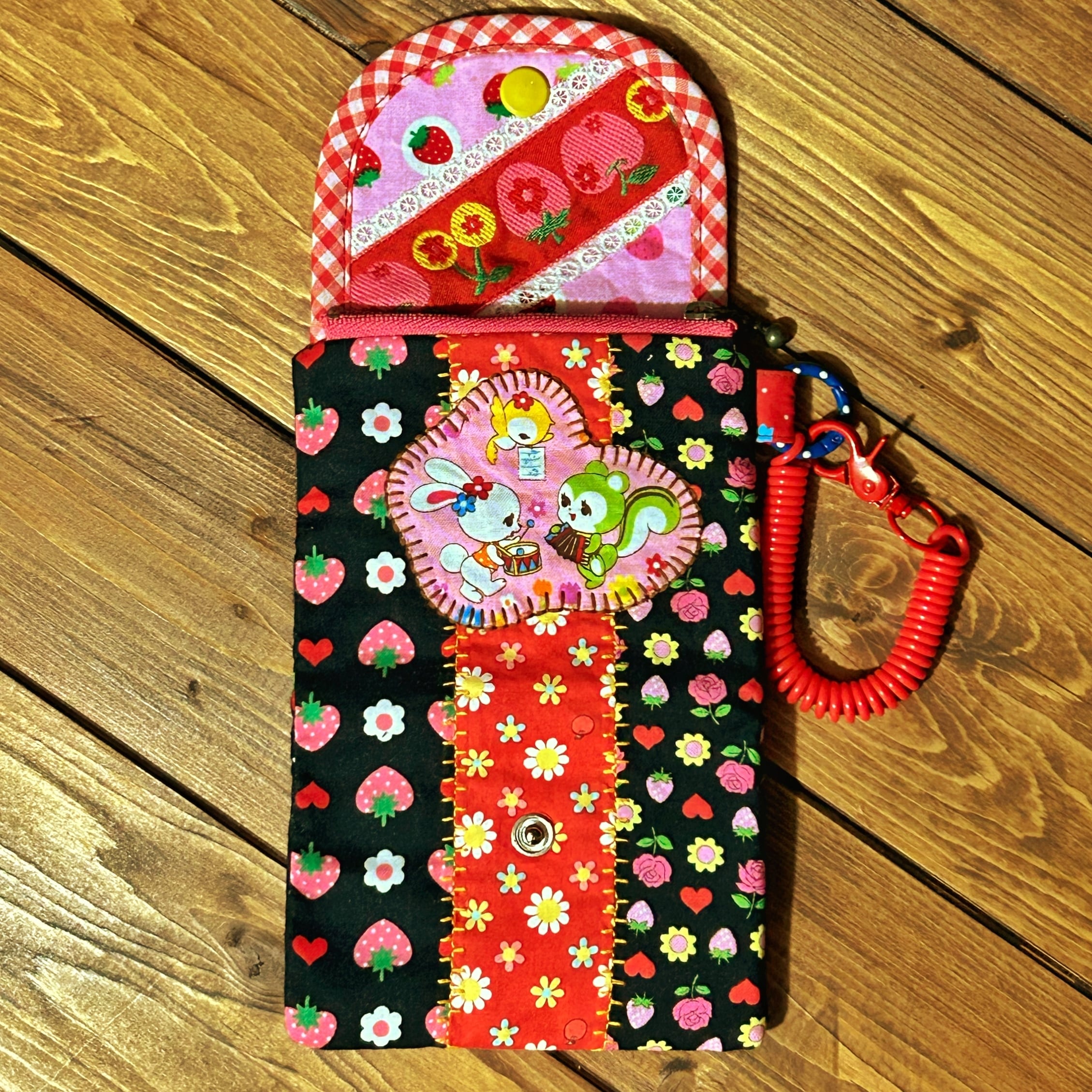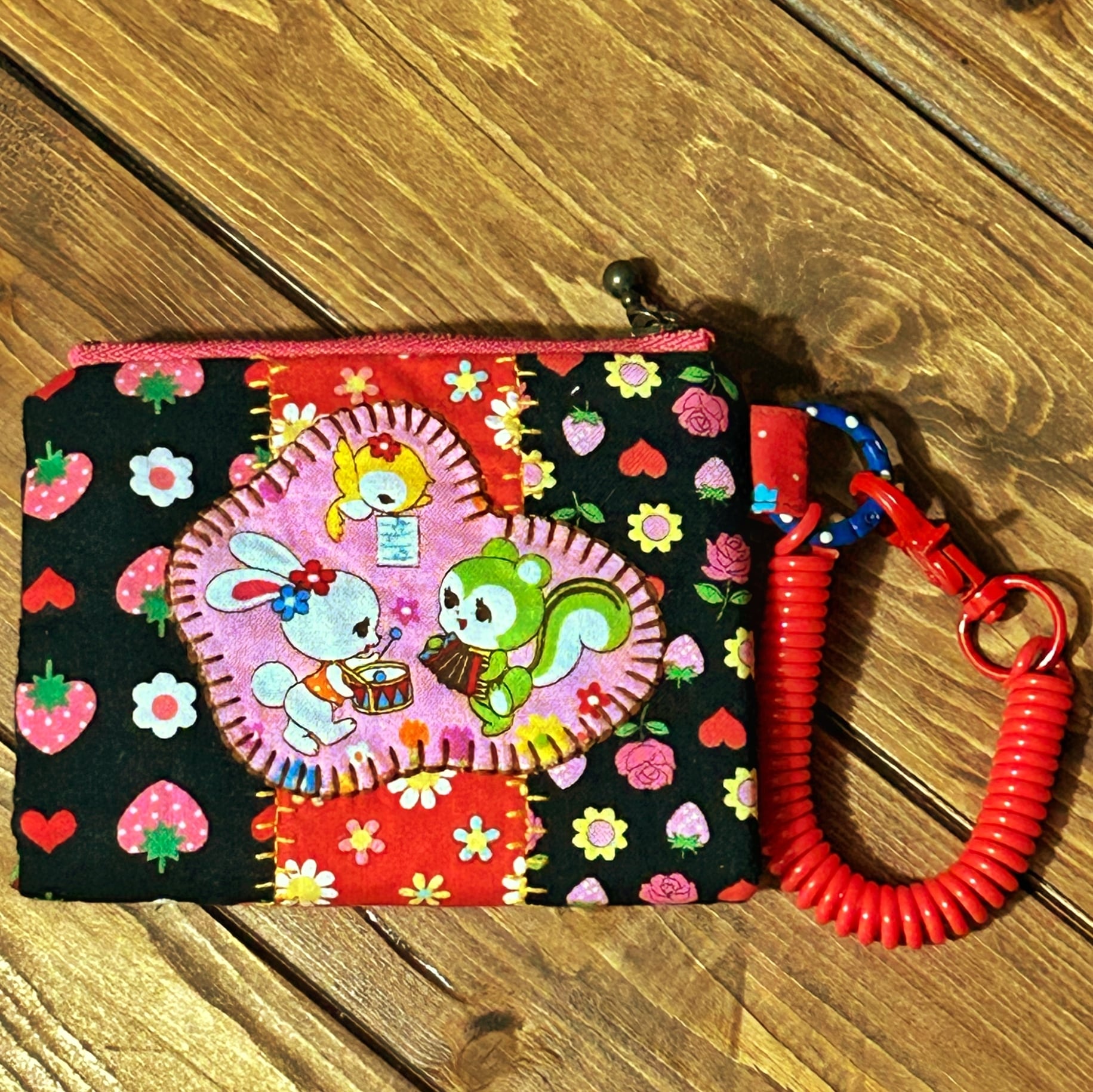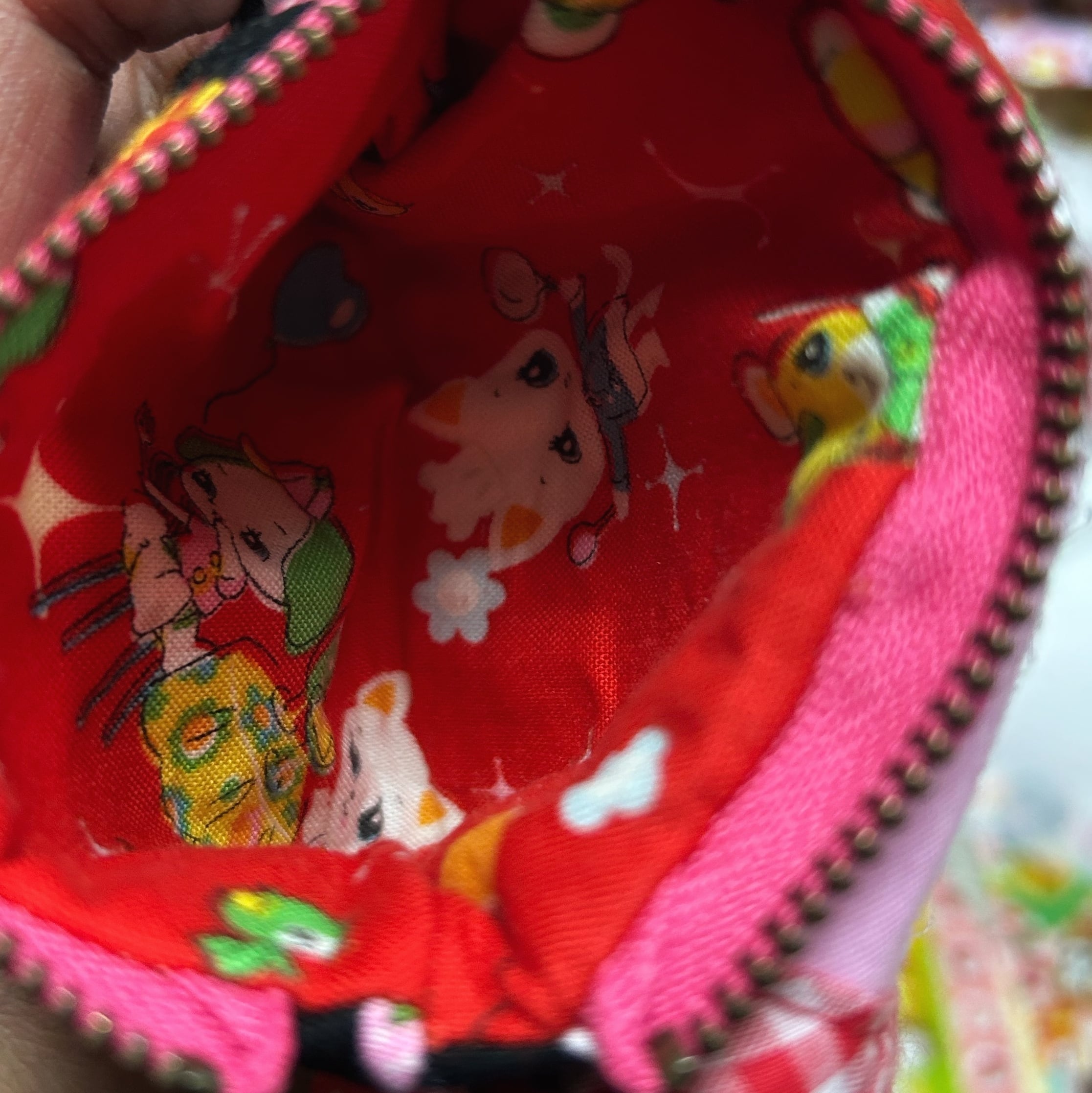 レトロポップな柄をぎゅぎゅっと詰め込んだ、カラフルで楽しい小さなお財布です〜。