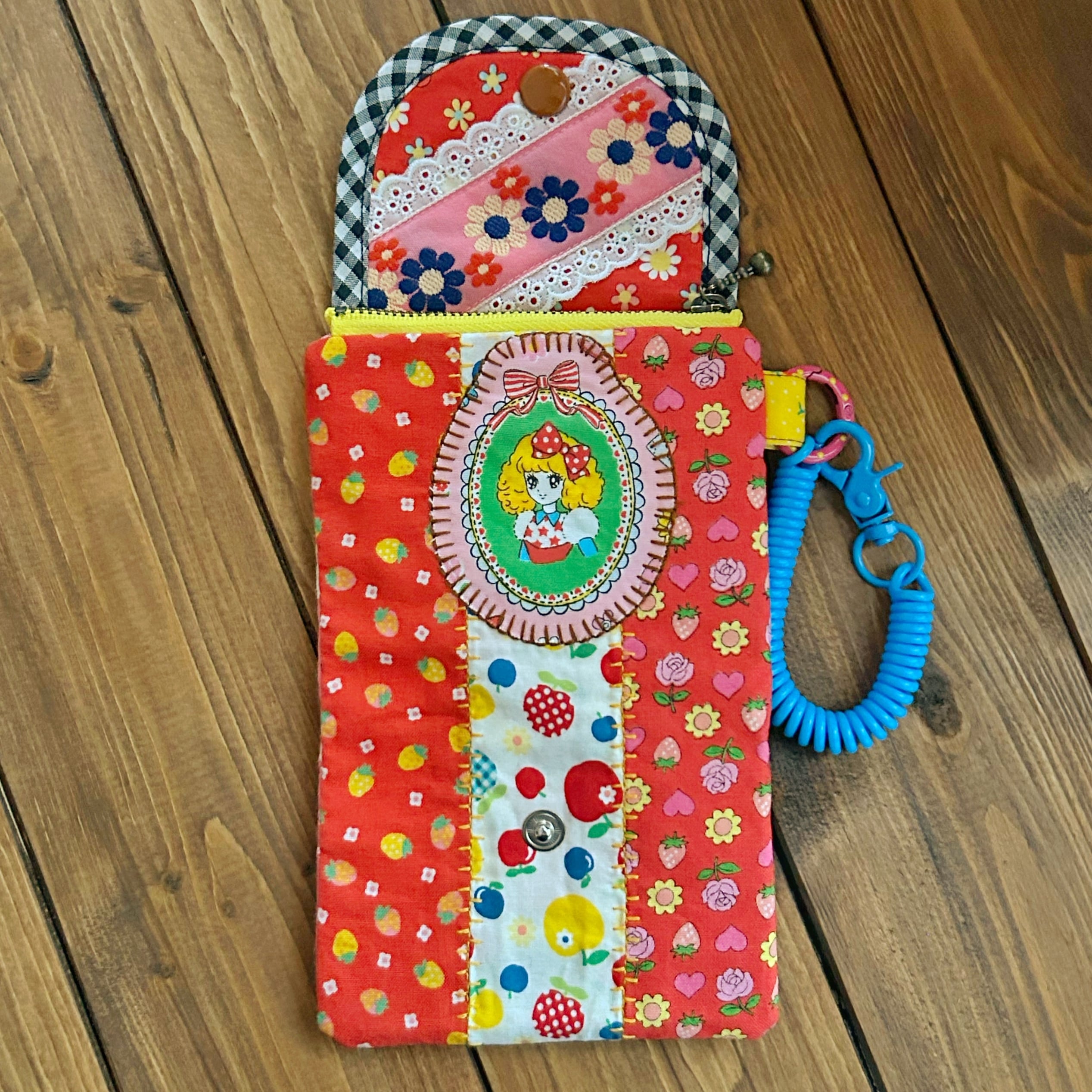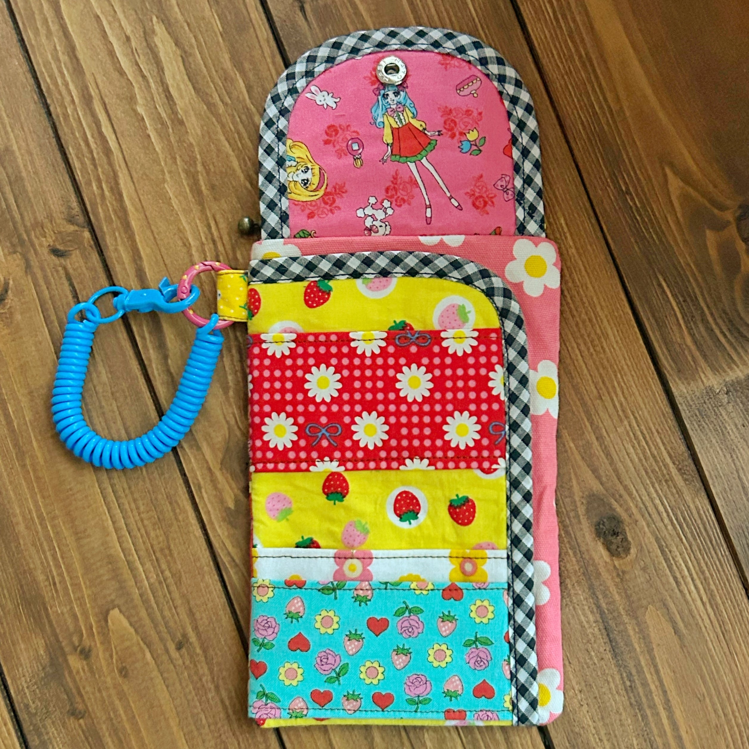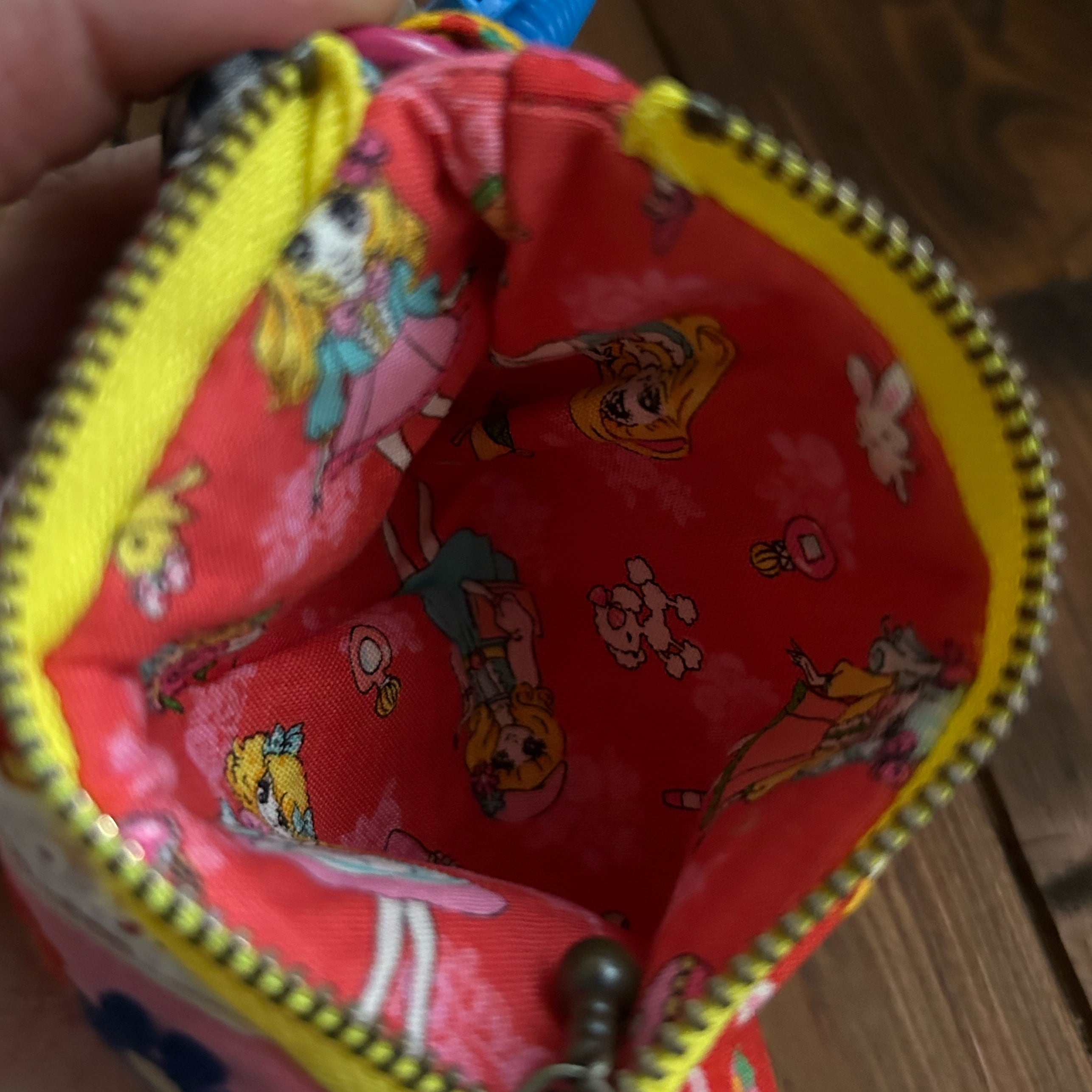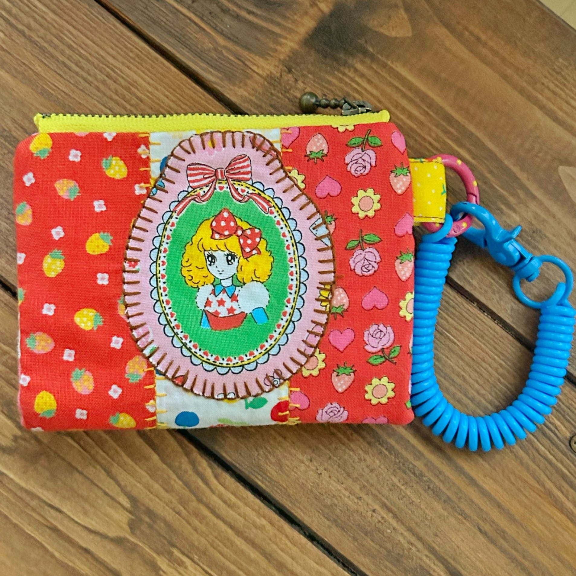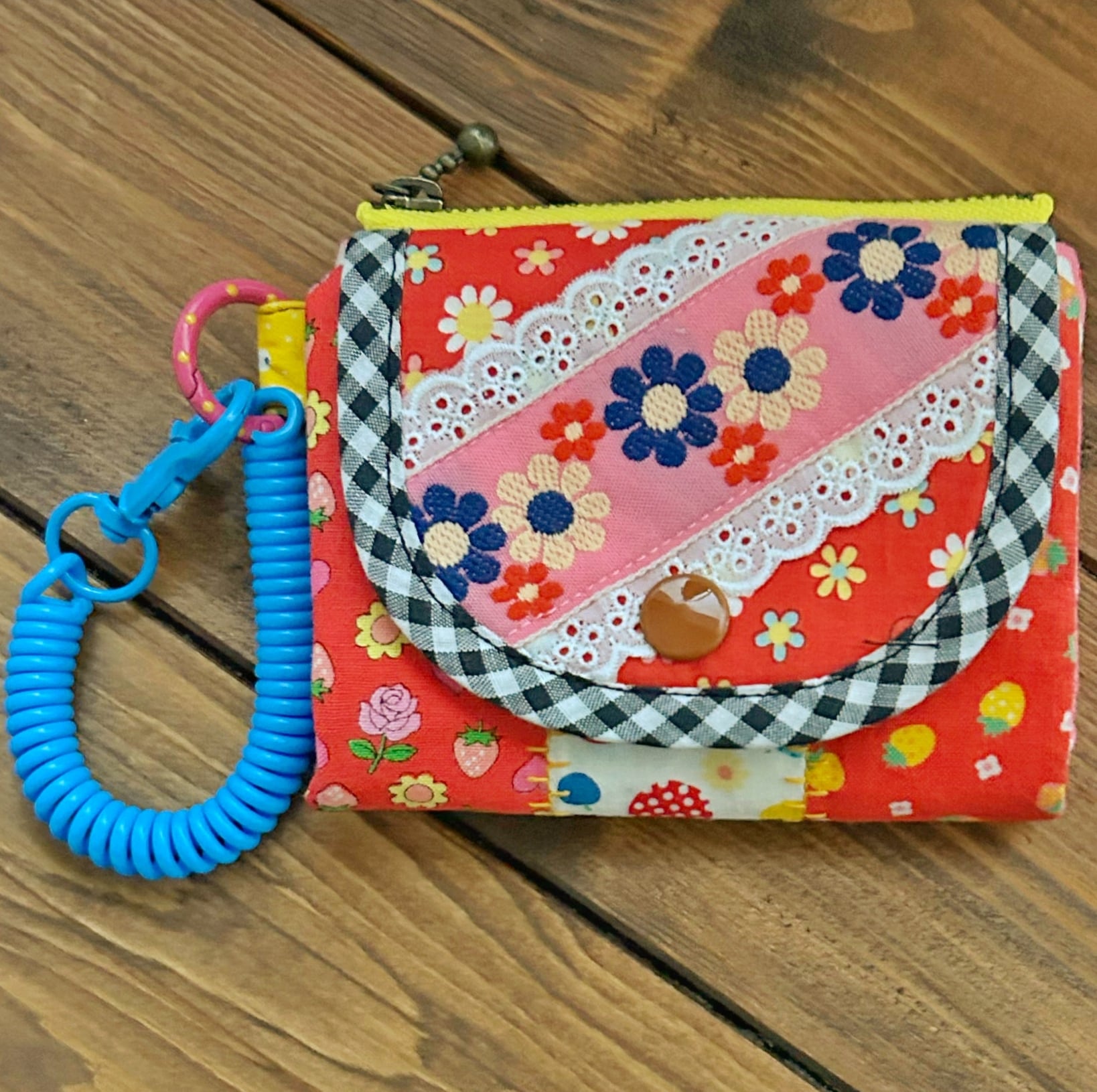 レトロポップな柄をぎゅぎゅっと詰め込んだ、カラフルで楽しい小さなお財布です〜。