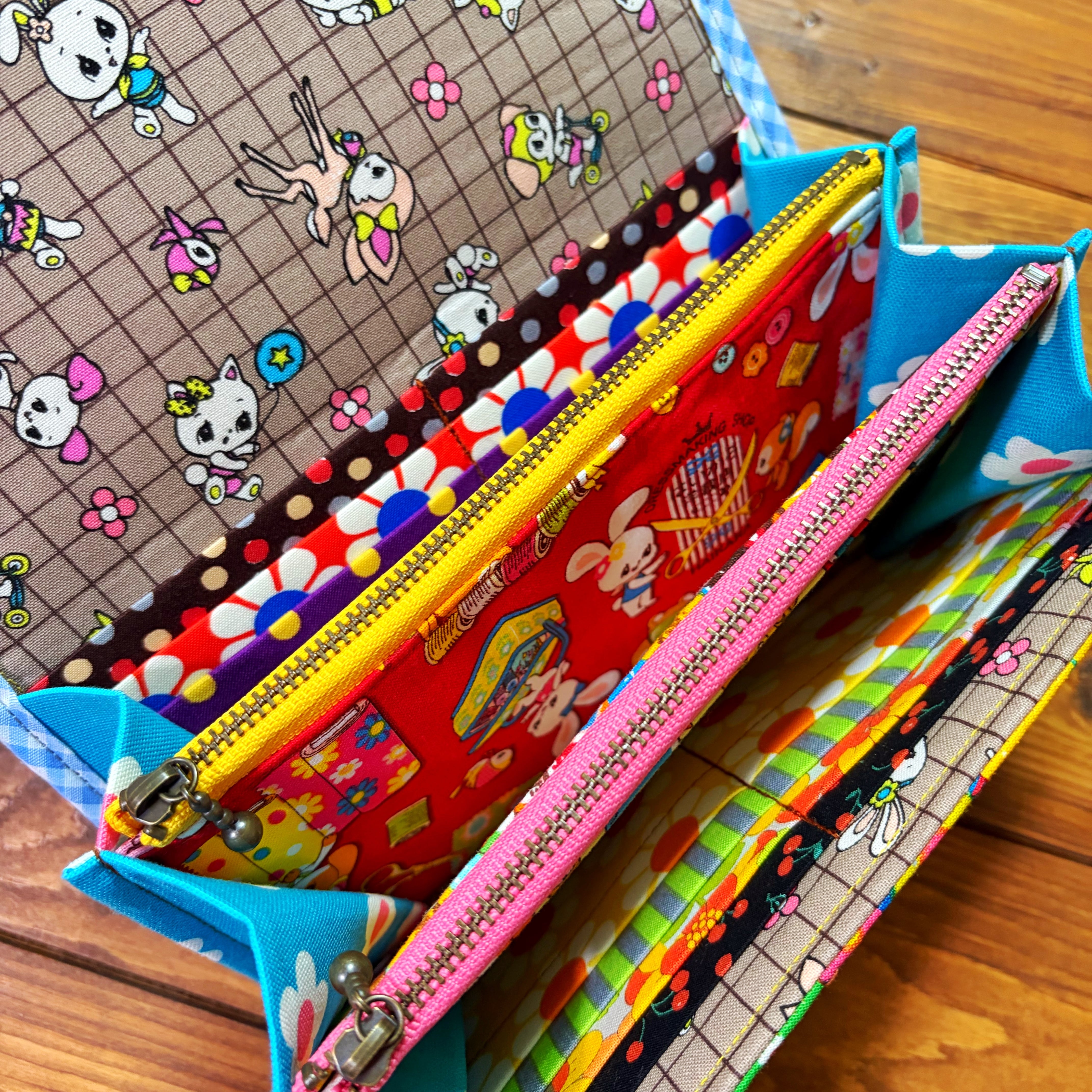 レトロポップ生地にチロリアンテープをぎゅっと詰め込んだ、見ているだけで気分が上がる“特別な長財布”です。