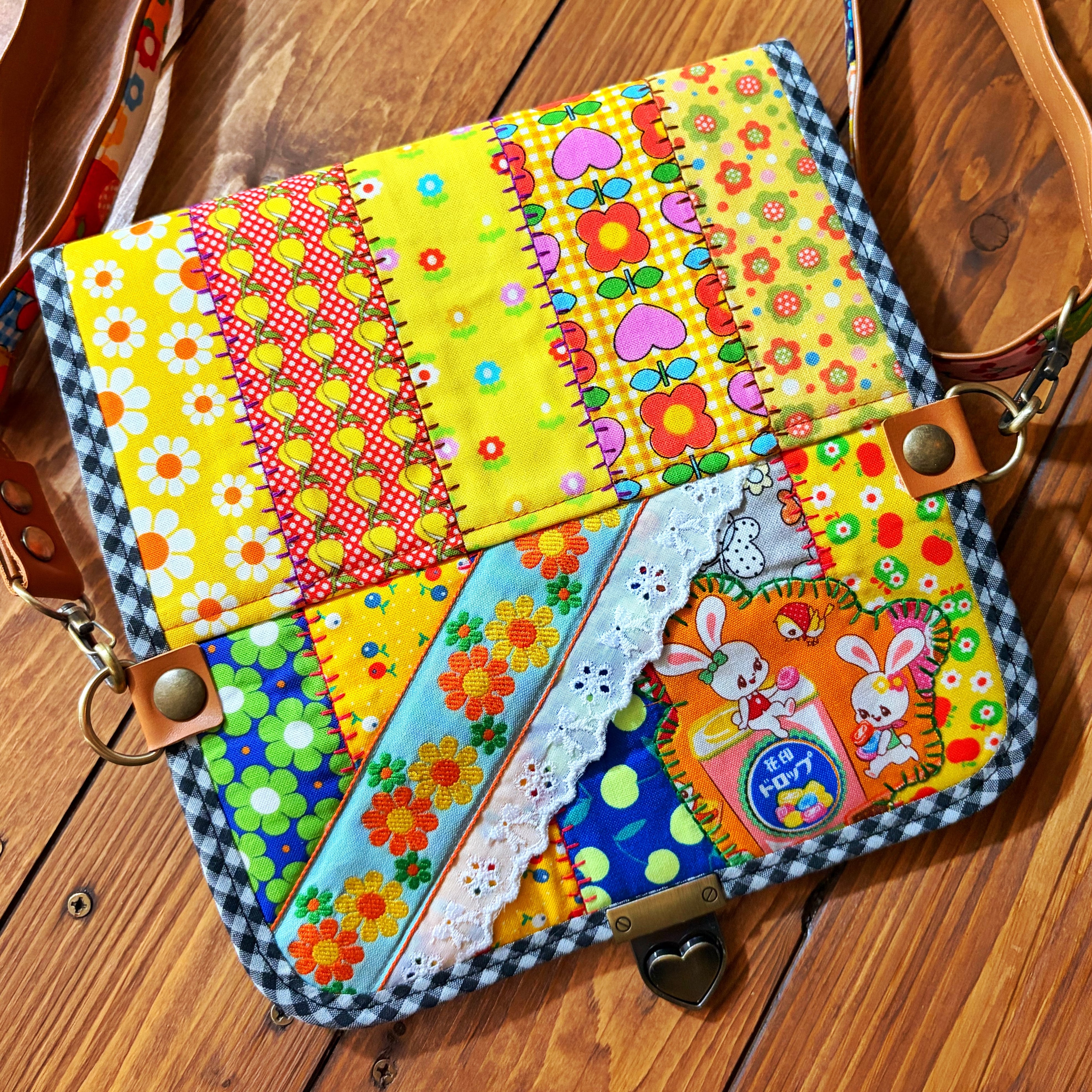 一つひとつ丁寧に組み合わせたパッチワーク仕立てに、同じ配置ではもう作れない、一点ものです。