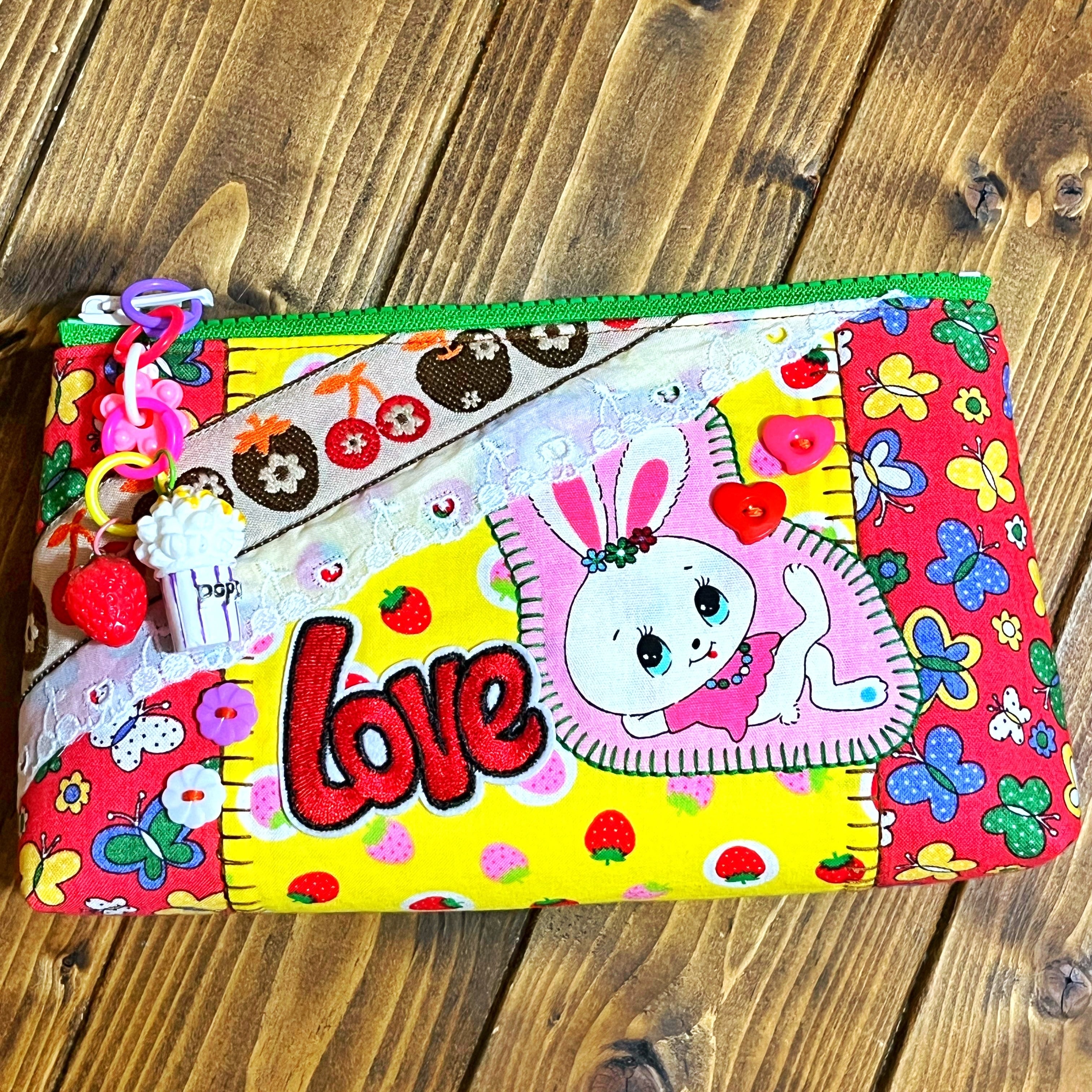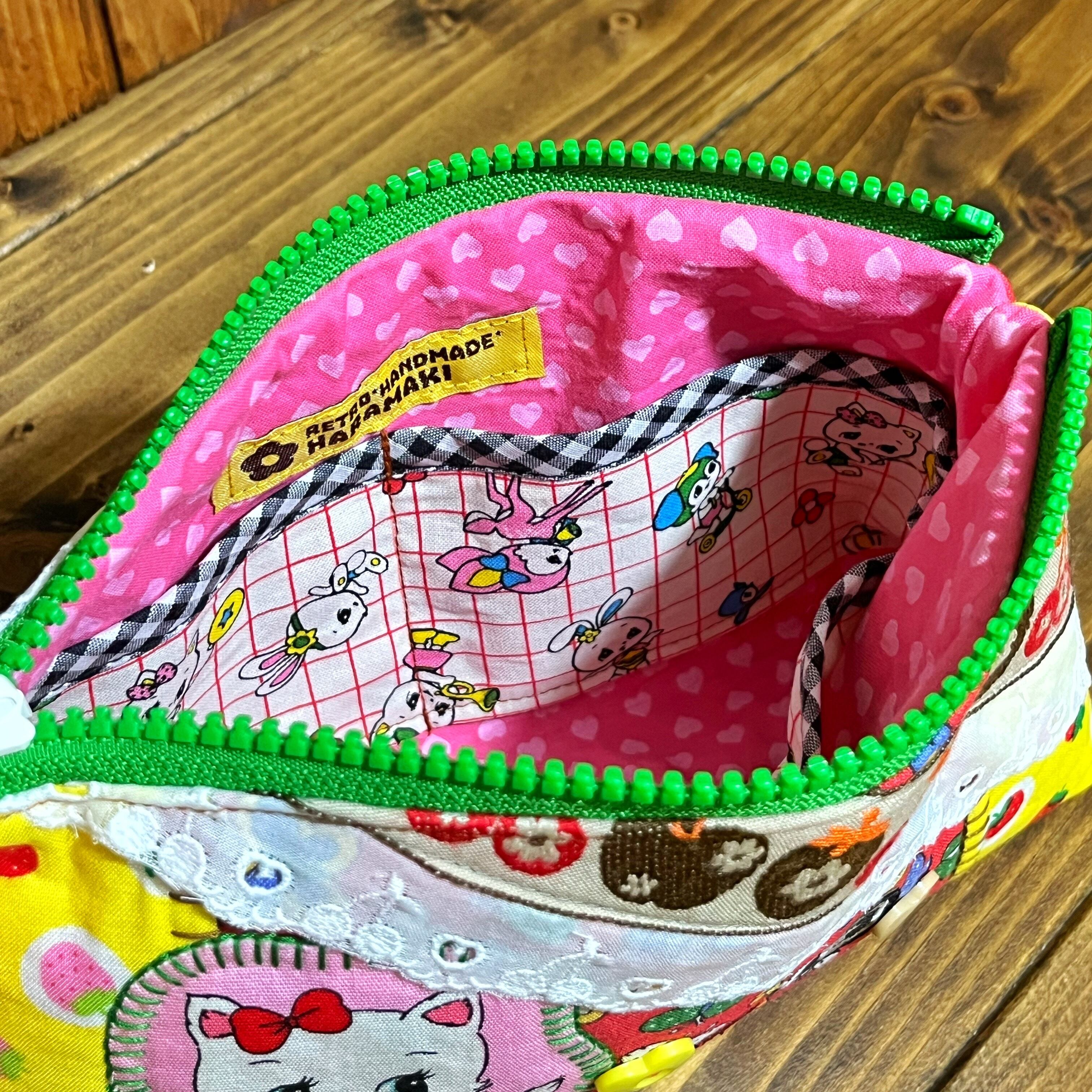今回はレトロ定番な赤とイエローの配色を主体にレトロアニマルで人気のハニーチューン廃盤生地からうさぎちゃんと猫ちゃんをチョイスしてみました♡